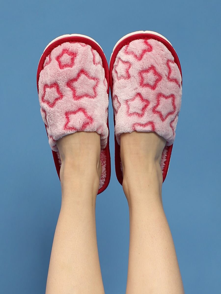Тапочки ИвШуз С-6ЖВТ-МР, бордовые звезды, размер 38-39