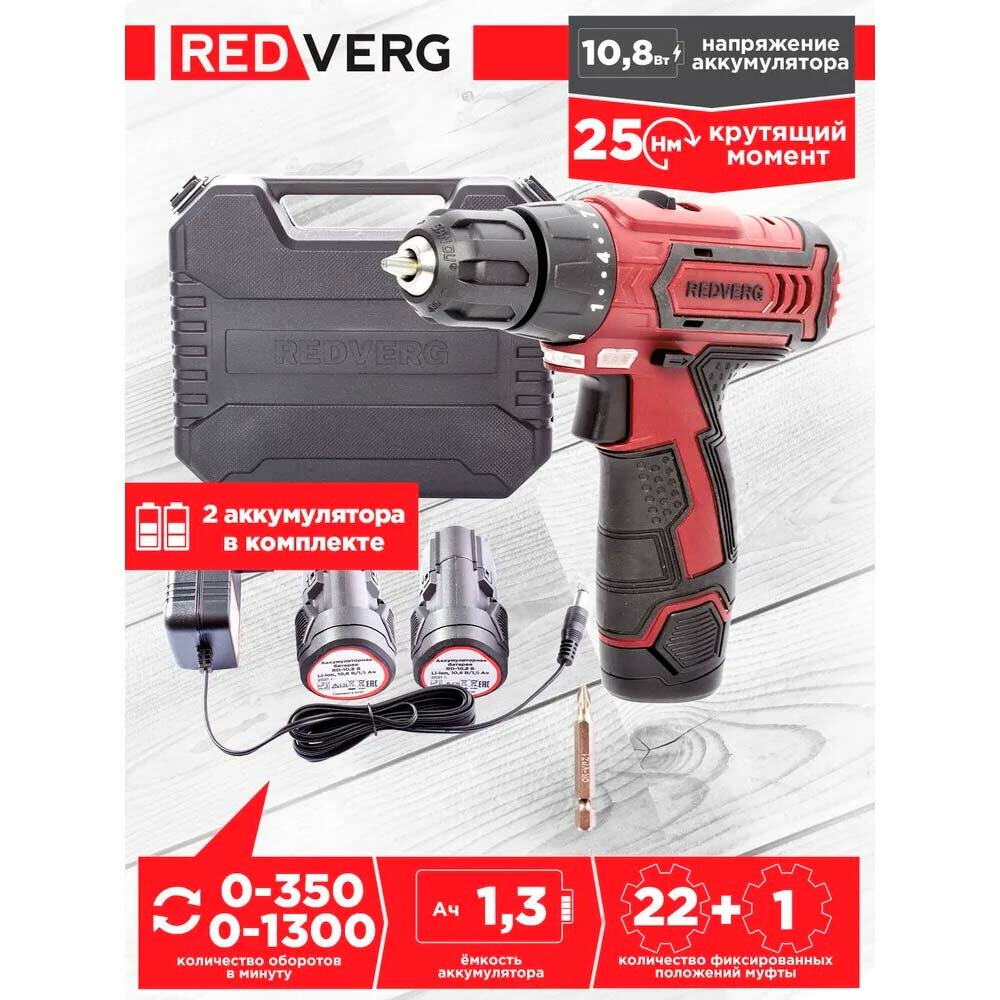 Шуруповерт аккумуляторный RedVerg RD-SD10L/2Y (6628688)