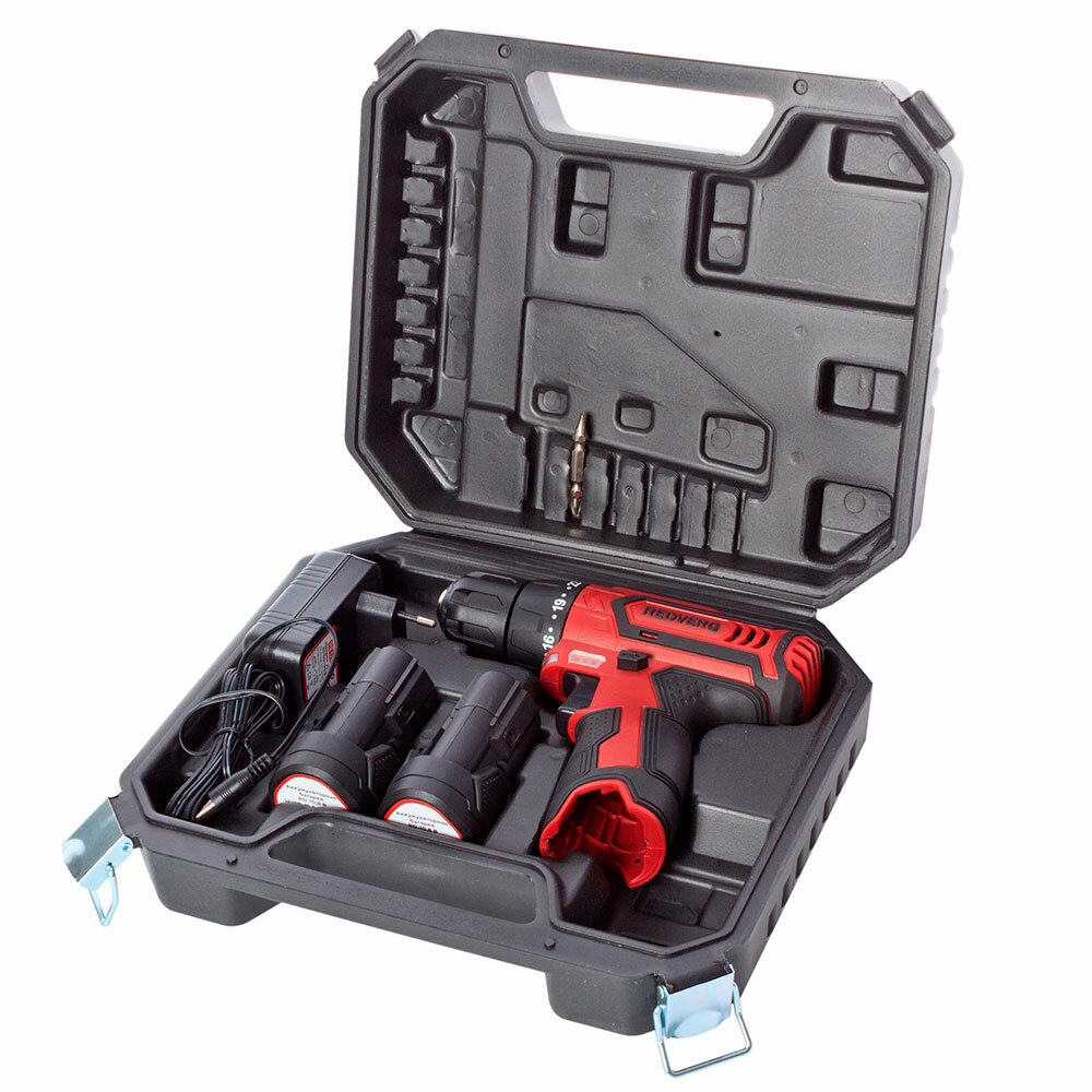 Шуруповерт RedVerg RD-SD10L/2Y, кейс, набор оснастки