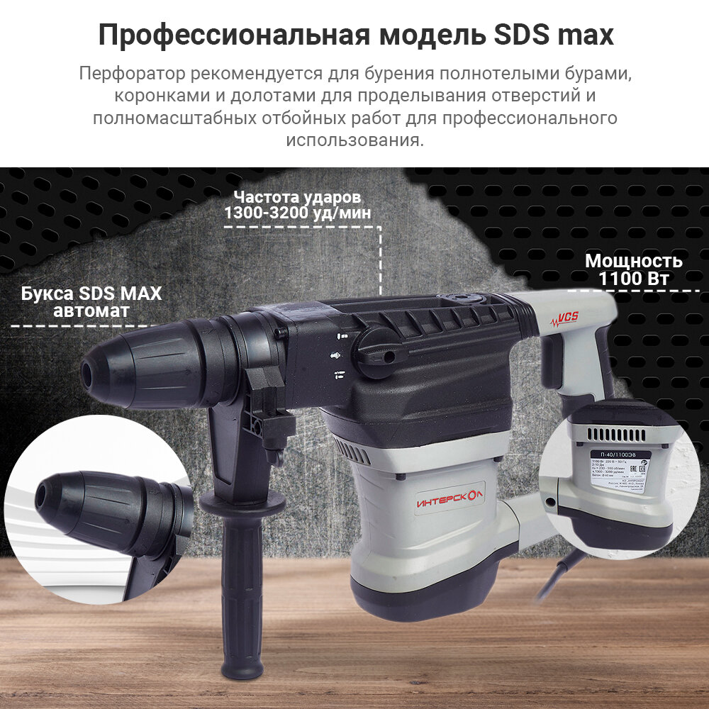 ИНТЕРСКОЛ П-40/1100ЭВ перфоратор SDS max