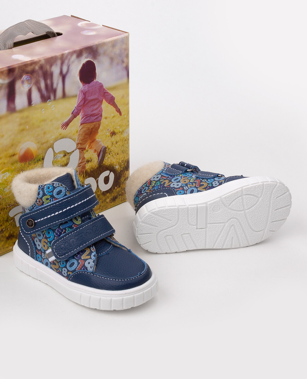 Купить Ботинки детские 33004 кожа,р.22 нью-йорк синий/цифры