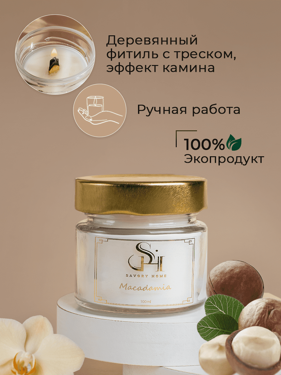 СохранитьСвеча ароматическая "Орех макадамия" 100мл, Savory Home интересное: