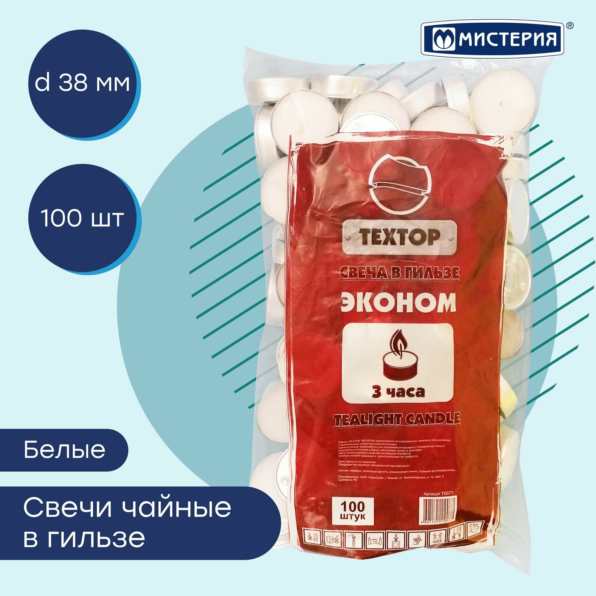 Свечи TEXTOP в гильзе белые, из парафина 100 штук