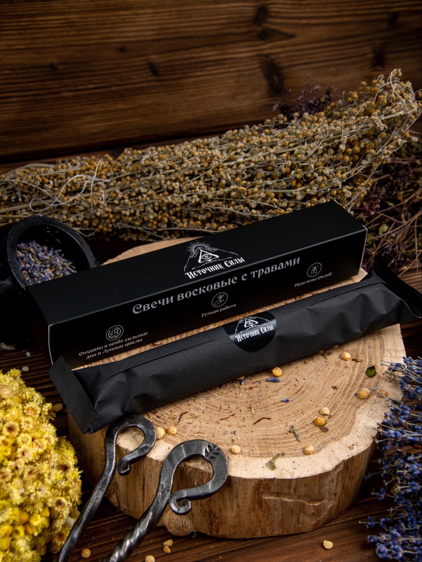 Свечи восковые черные с травами Чистка и Защита 6 шт.
