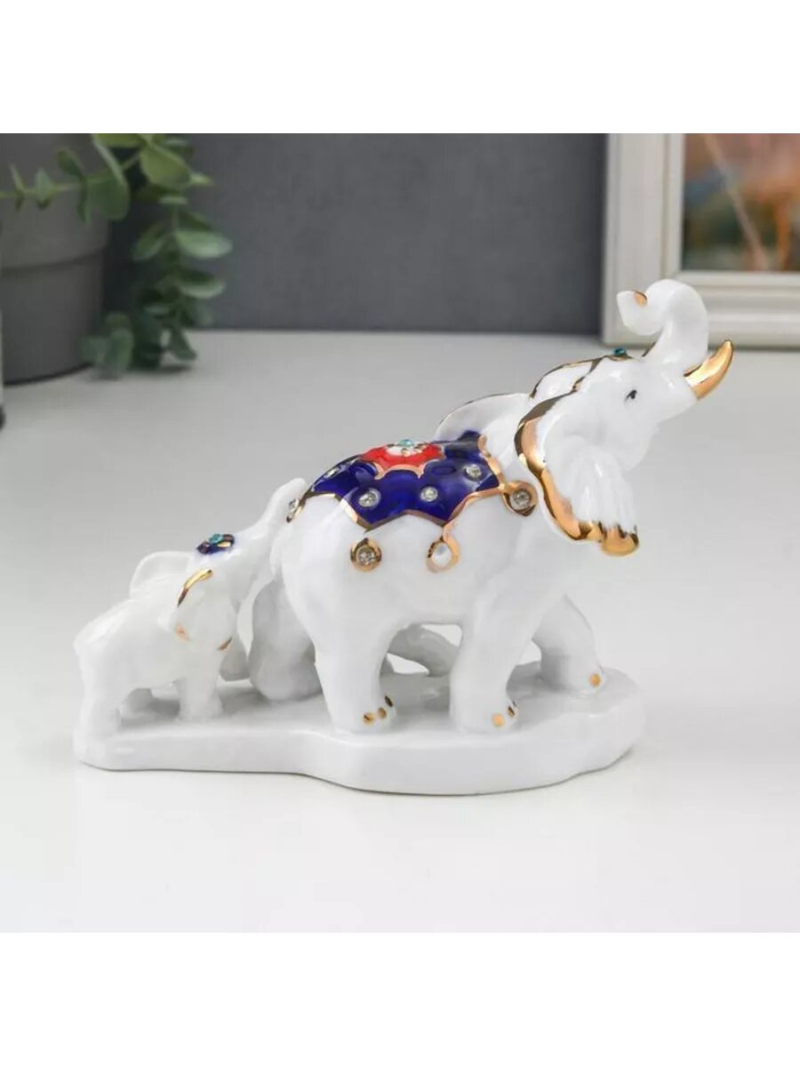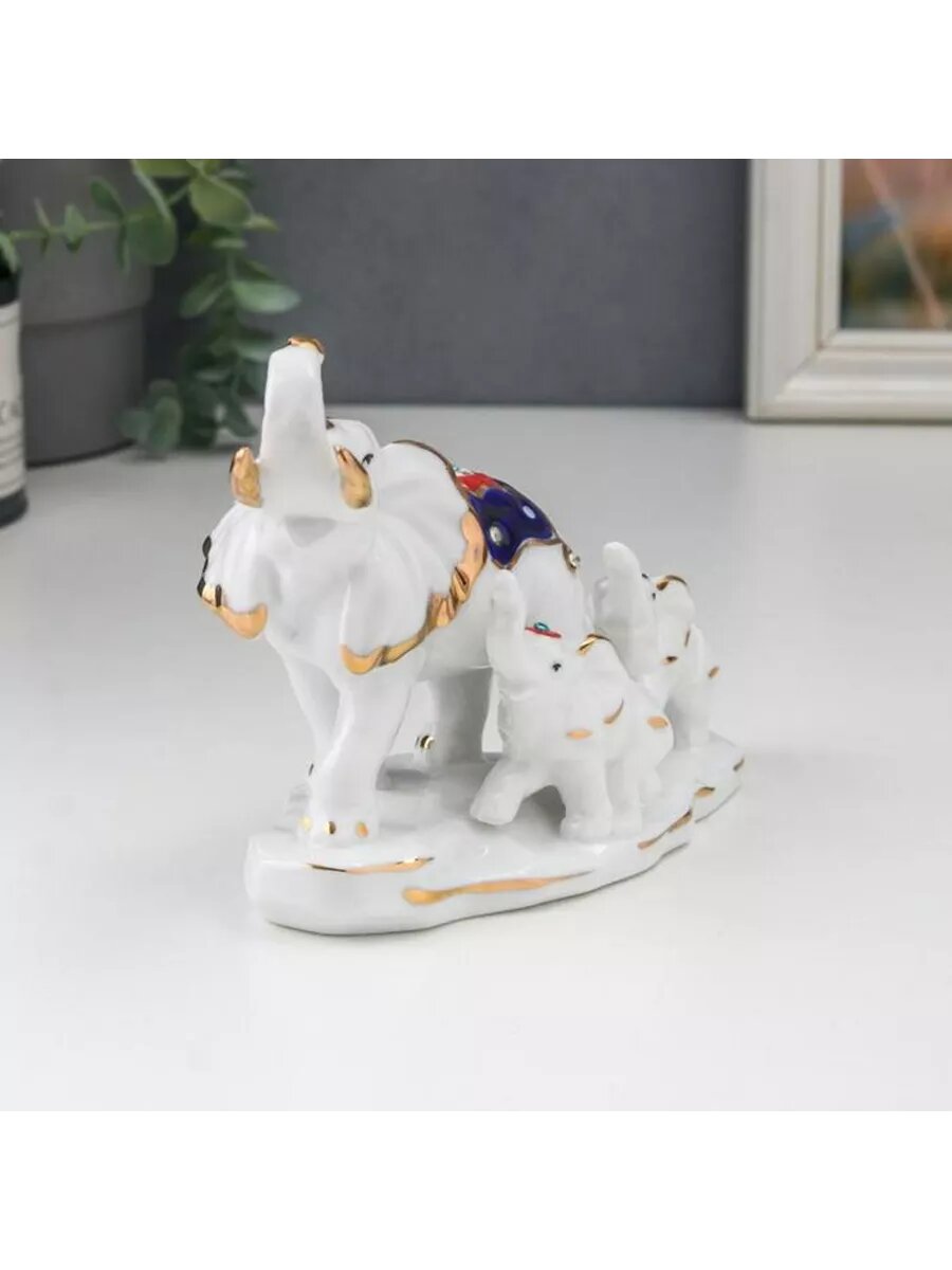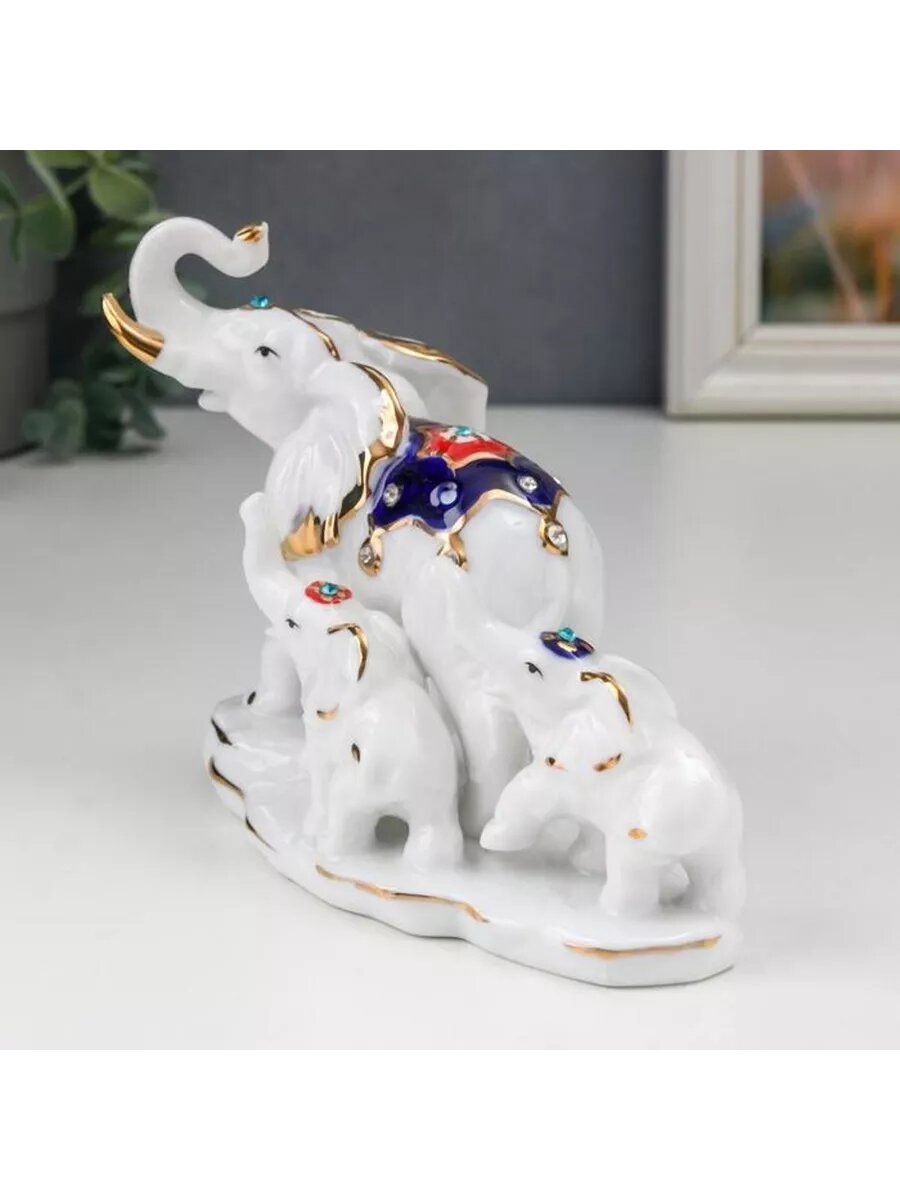 Купить Сувенир керамика"Слон со слонятами" белый с золотом, стразы 16,2 см 5182151 .