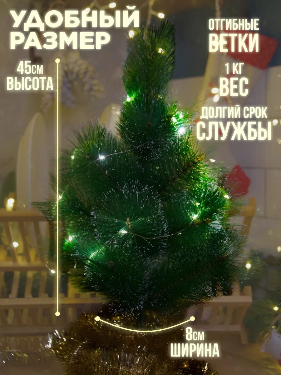 Купить Елка искусственная с шишками и инеем, 45 см