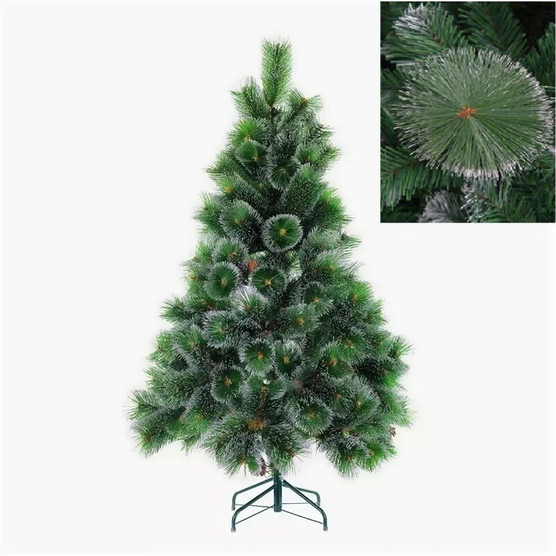 Елка искусственная с шишками и инеем, зеленая, высота 150 см