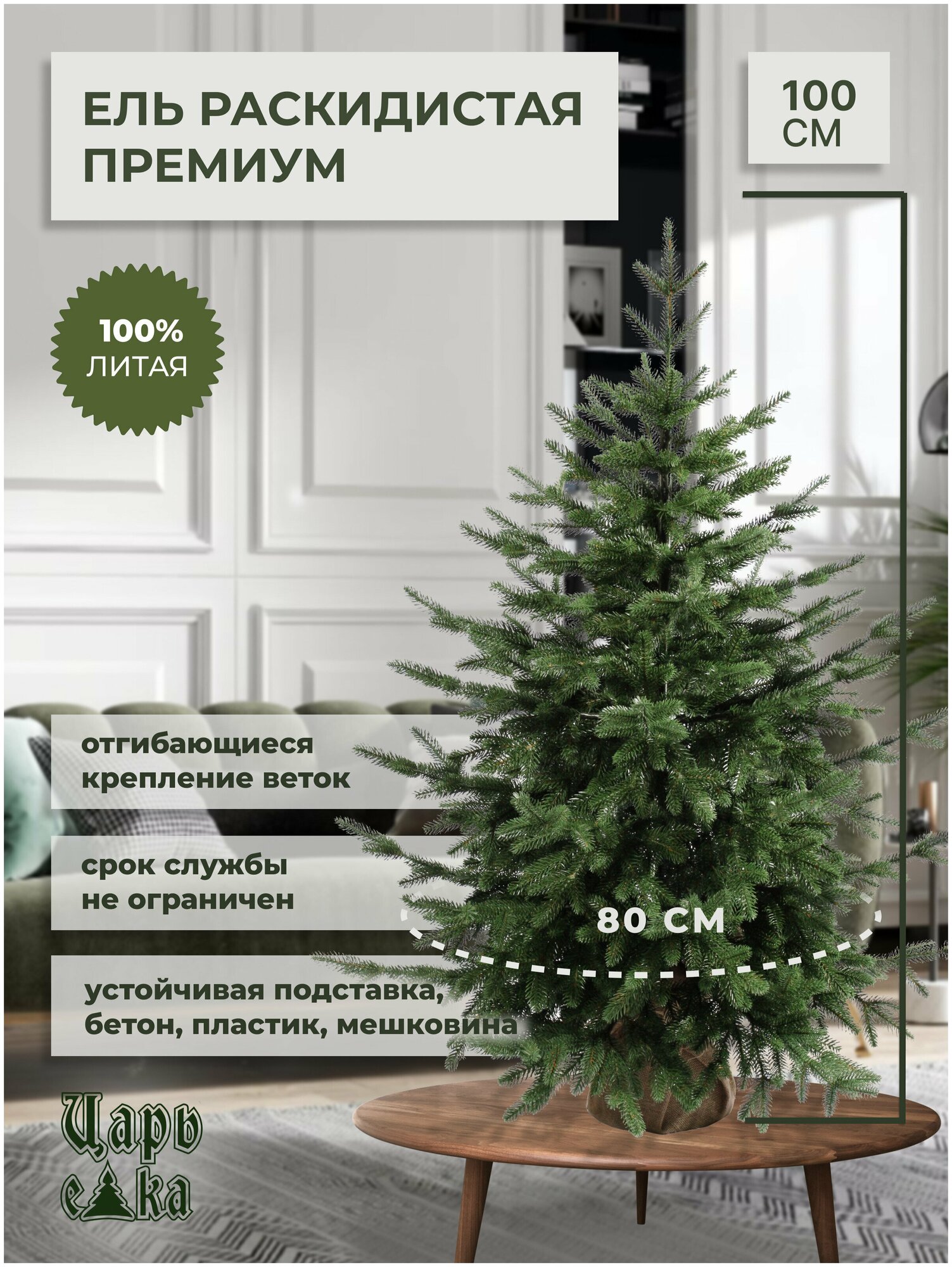 Купить Искусственная ель раскидистая премиум, 100 см, хвоя 100% литая, царь елка РДП-100