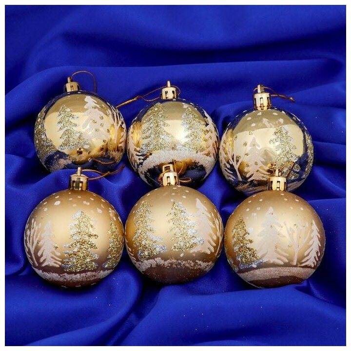 Набор шаров пластик d-6 см, 8 шт "Снежные ёлки" золото 4196469 интересное: