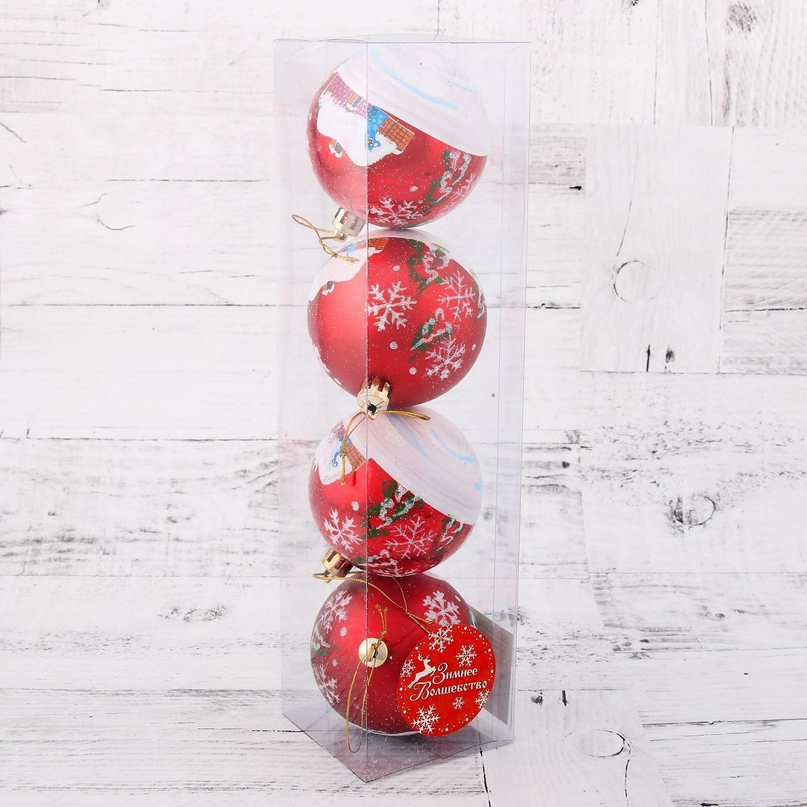 Купить Набор шаров пластик d-7 см, 4 шт "Избушка" красный 1332602