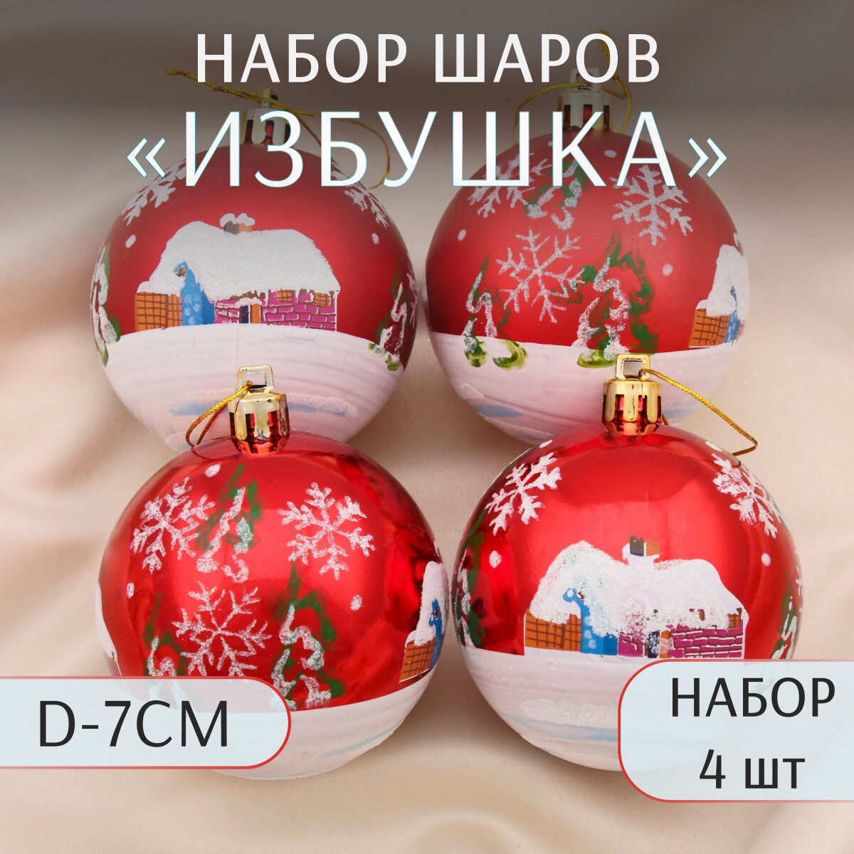 Набор шаров пластик d-7 см, 4 шт "Избушка" красный 1332602 интересное: