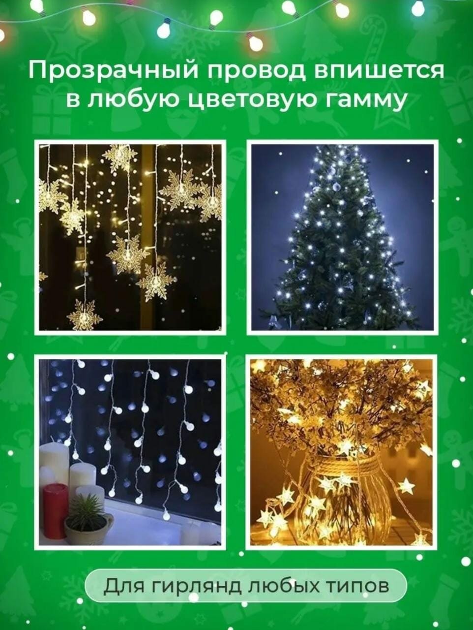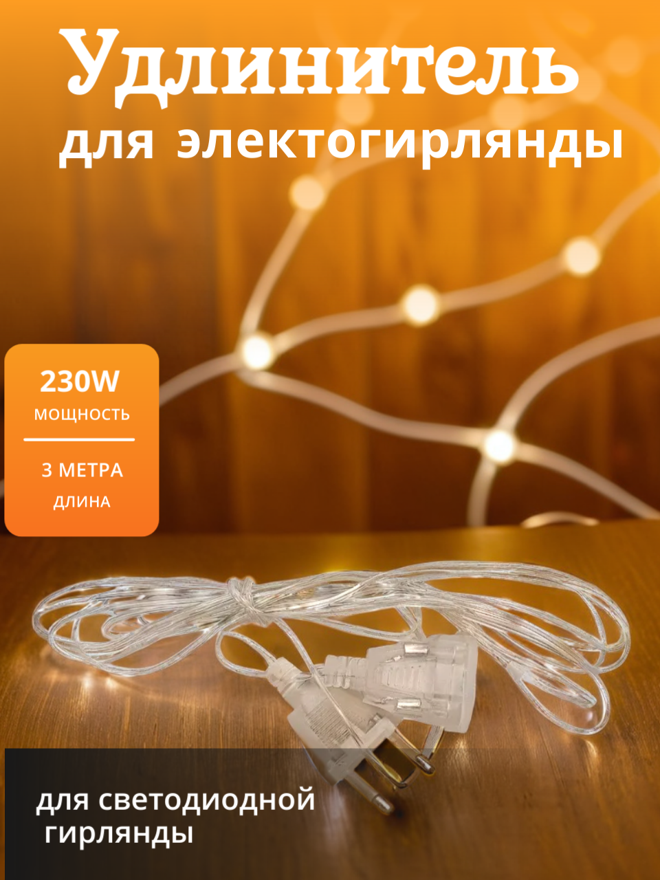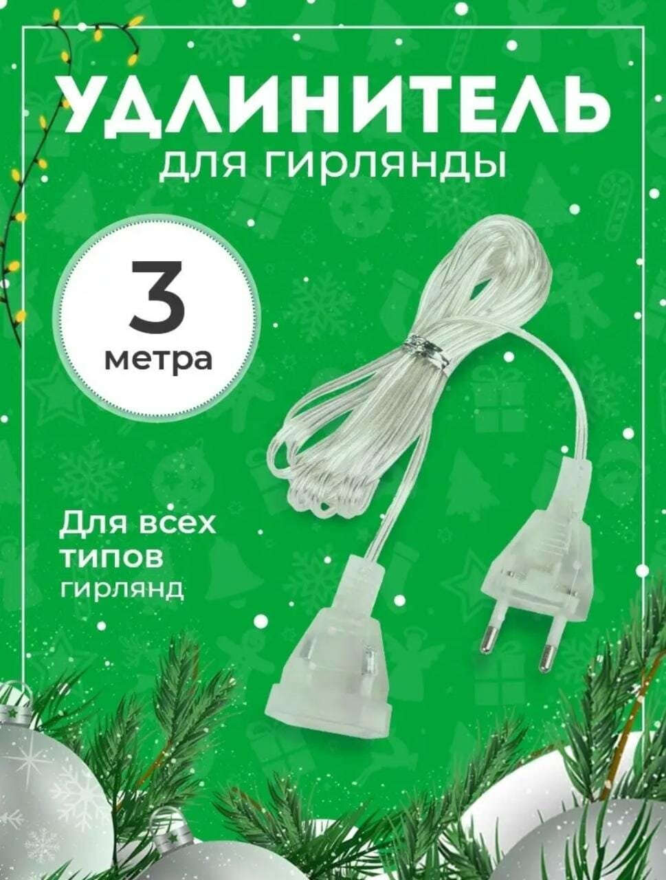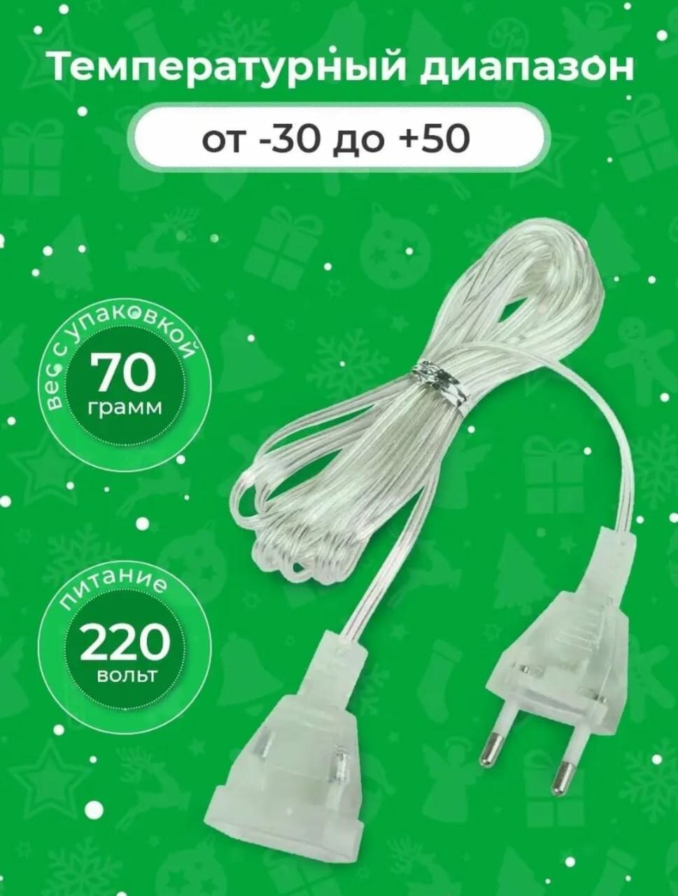 Удлинитель для гирлянды 3 метра с прозрачным проводом и вилкой интересное:
