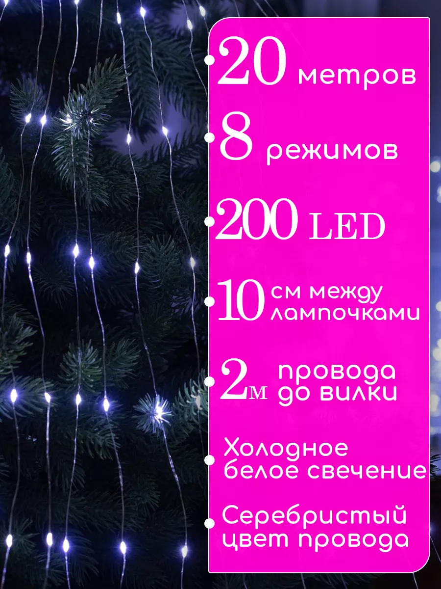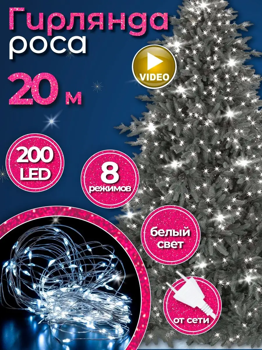"Гирлянда-роса 20 м" от бренда TIKO, холодный свет. белая интересное: