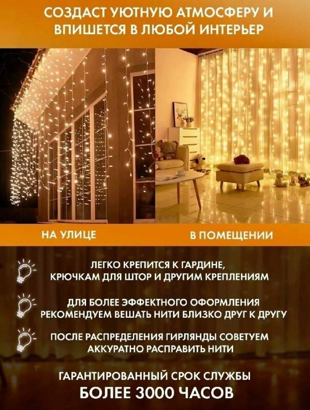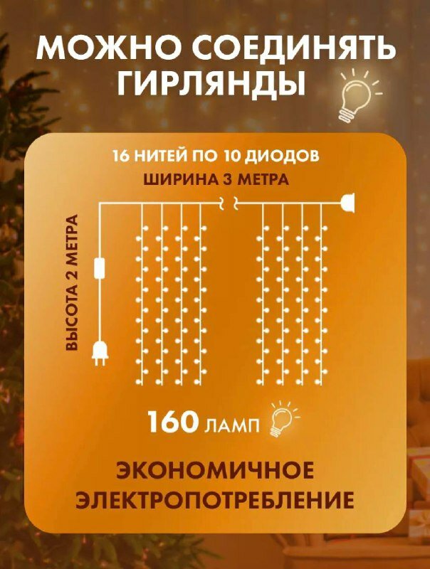 СохранитьГирлянда электрическая 3x2 метра, желтый цвет интересное: