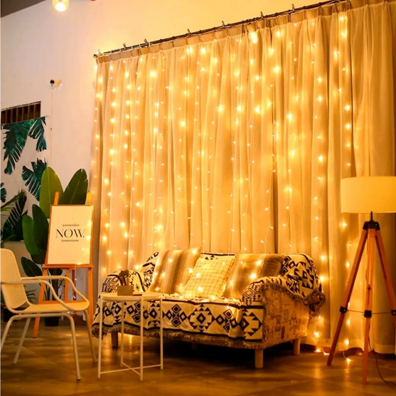 Гирлянда электрическая светодиодная 3х3 м. Желтая / Гирлянда штора занавес новогодняя