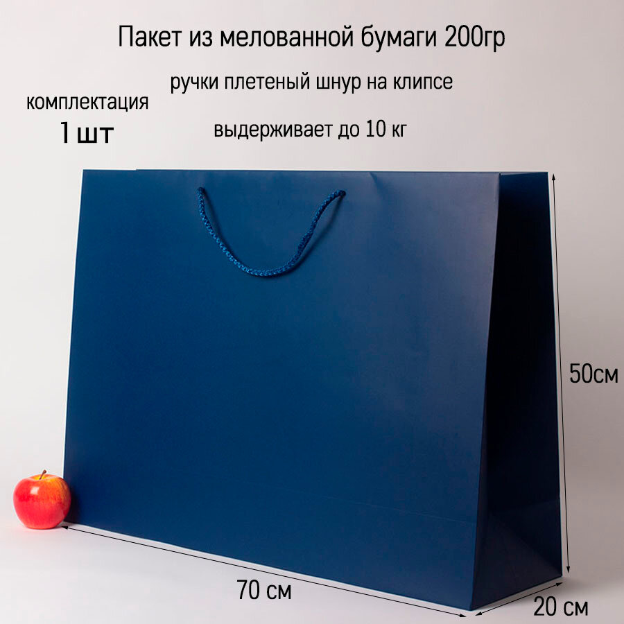 Пакет подарочный большой 70х50х20 темно-синий, бумажный (1шт)