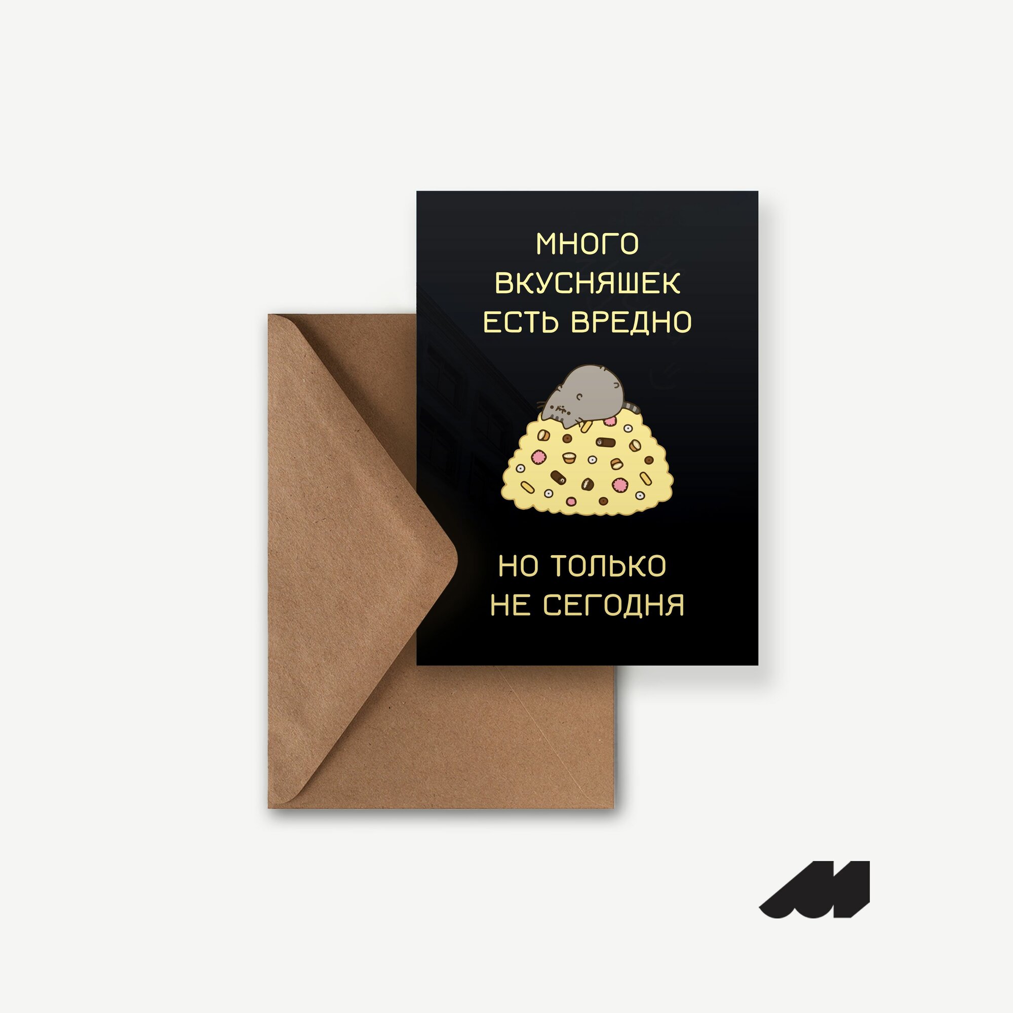 Дизайнерская открытка Meswero / много вкусняшек / с подарочным конвертом / 10х15
