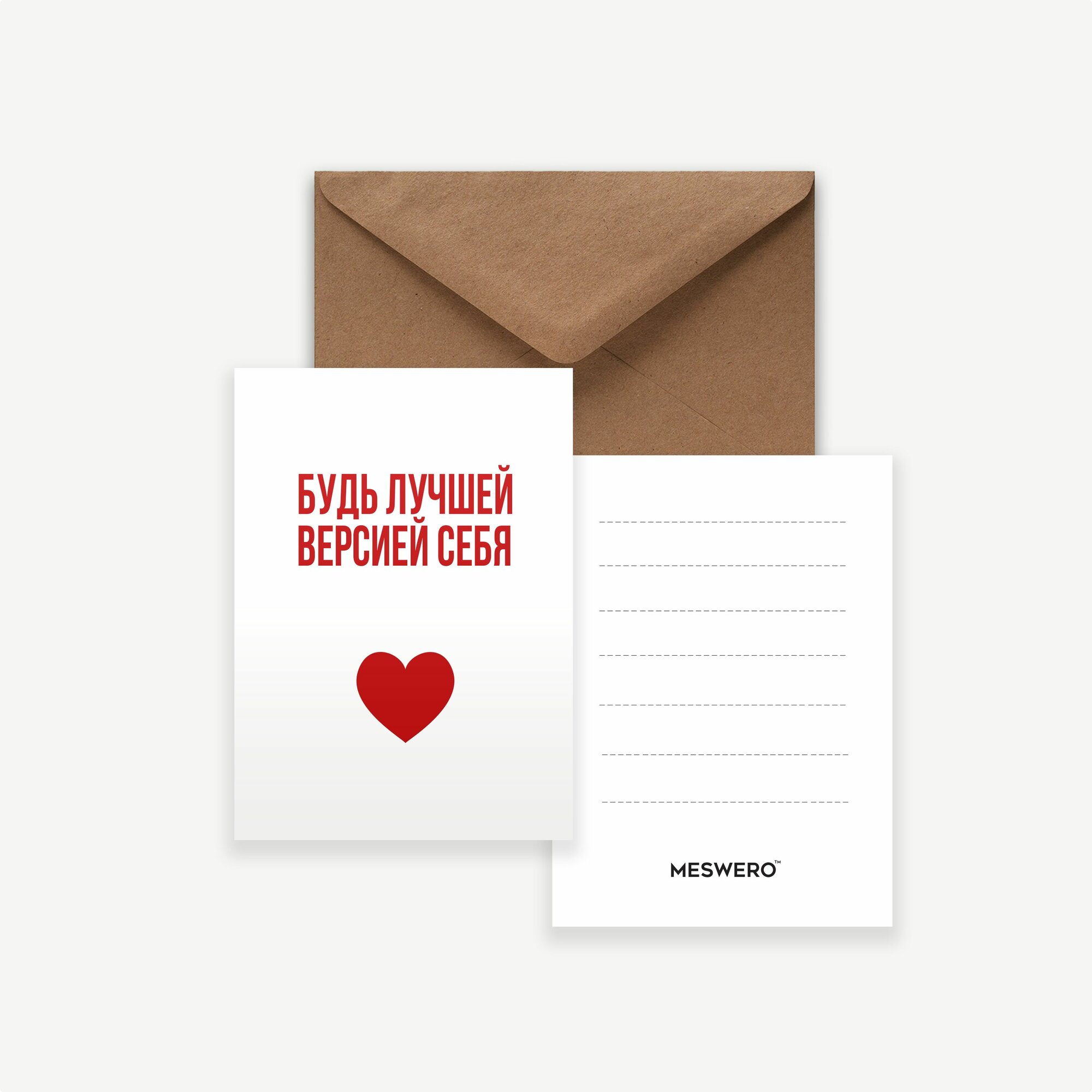 Дизайнерская открытка Meswero / Будь лучшей версией себя / с подарочным конвертом / 10х15