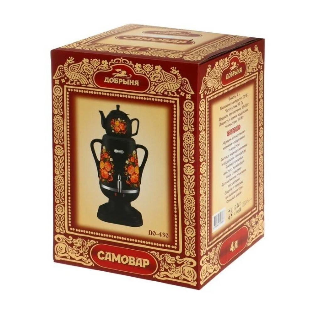 Купить Самовар электрический Термопот Добрыня DO-430 4 л жостово чер/кер заварник 1 л (OL)