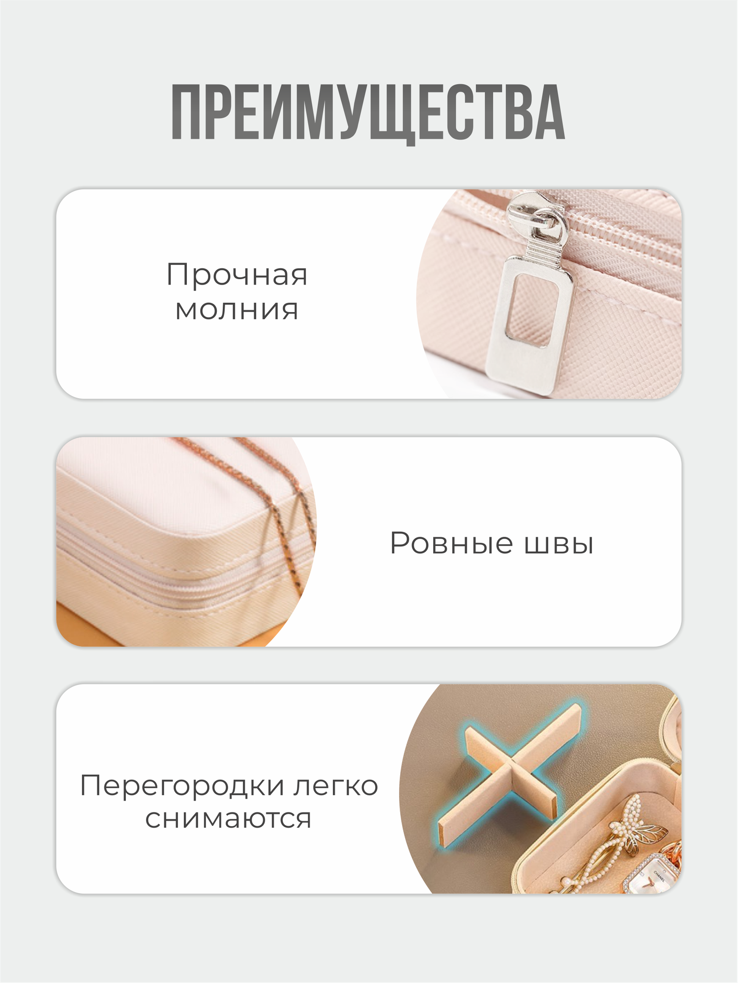 Шкатулка для хранения украшений и колец, коробочка для бижутерии, цвет - бежевый