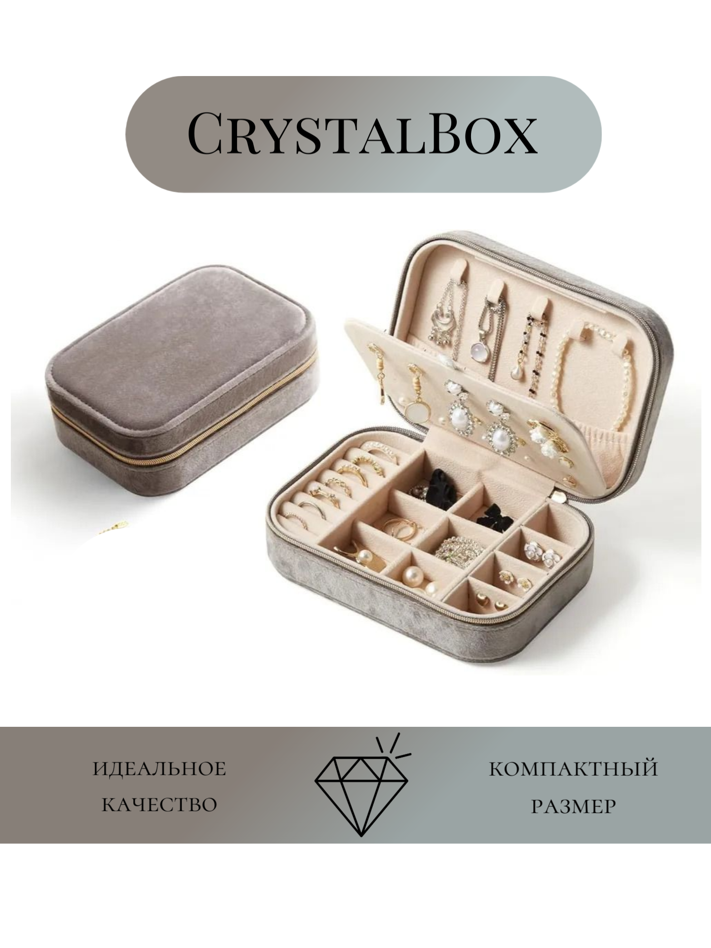 Дорожная шкатулка для украшений CrystalBox, маленькая, серая, бархатная интересное: