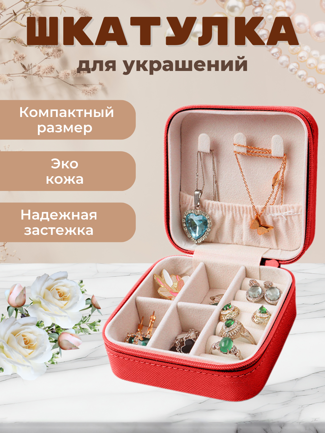 Шкатулка для хранения ювелирных украшений красная