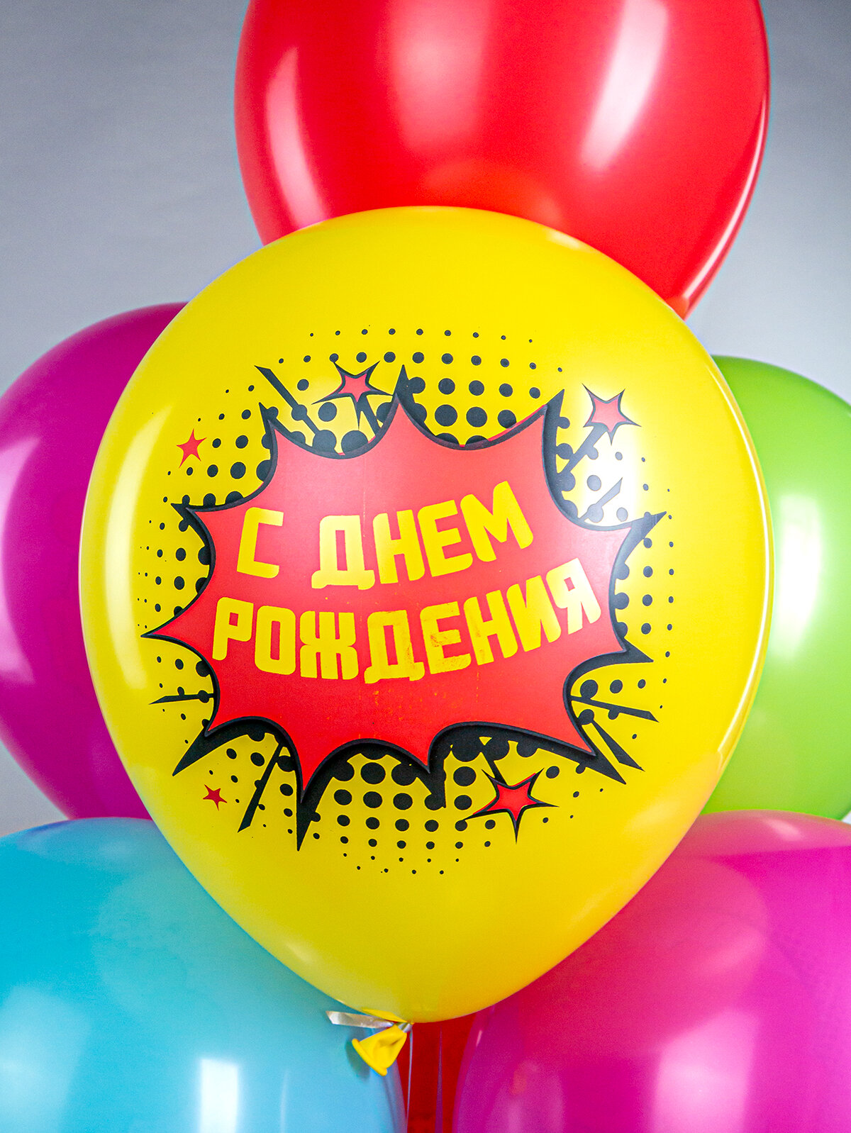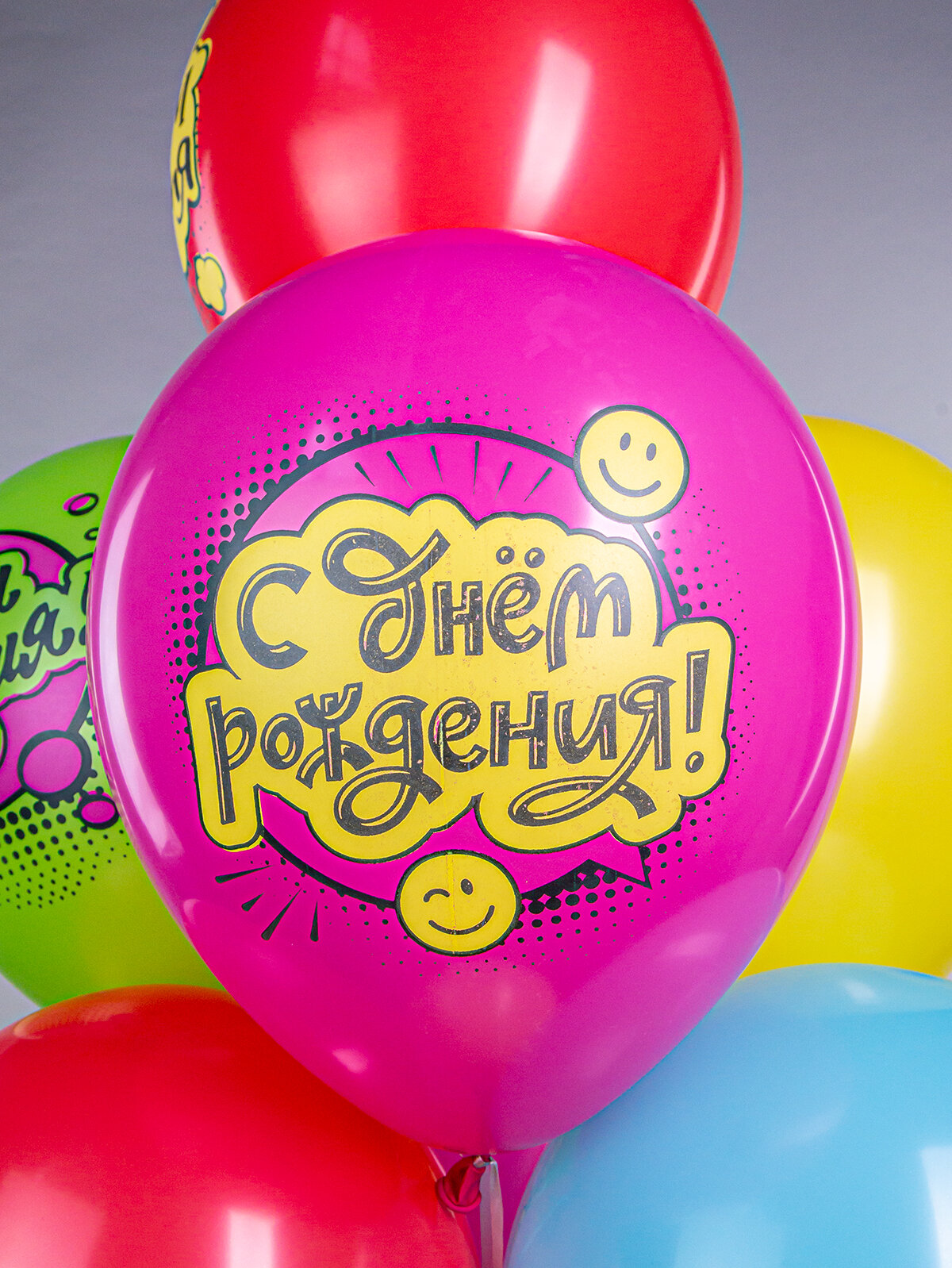 Купить Шарики воздушные на праздник с надписями "С Днем Рождения!" 10 шт