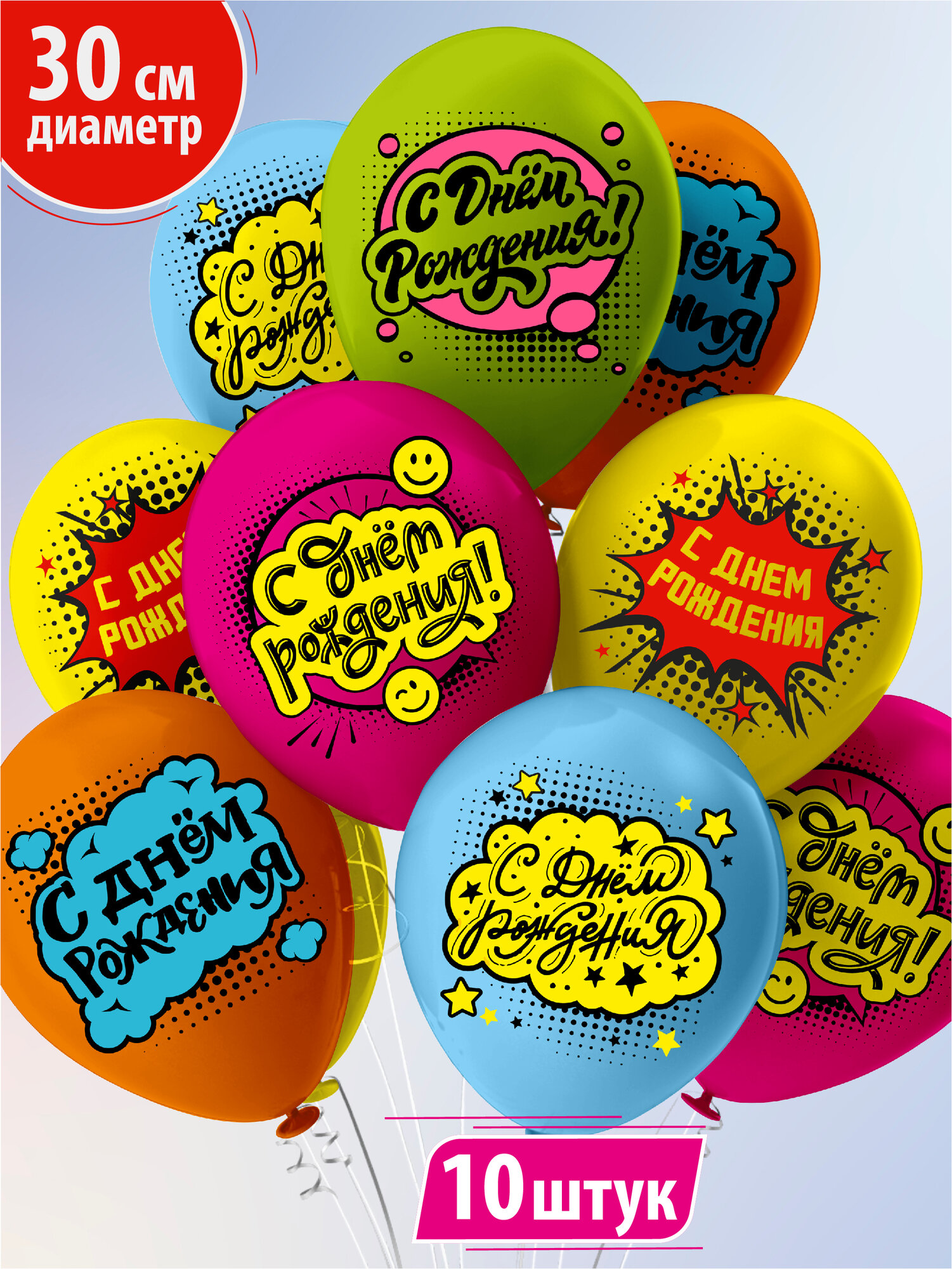 Шарики воздушные "С днем рождения!" для мужчины, женщины, мальчика, девочки, 30 см, набор 10 штук