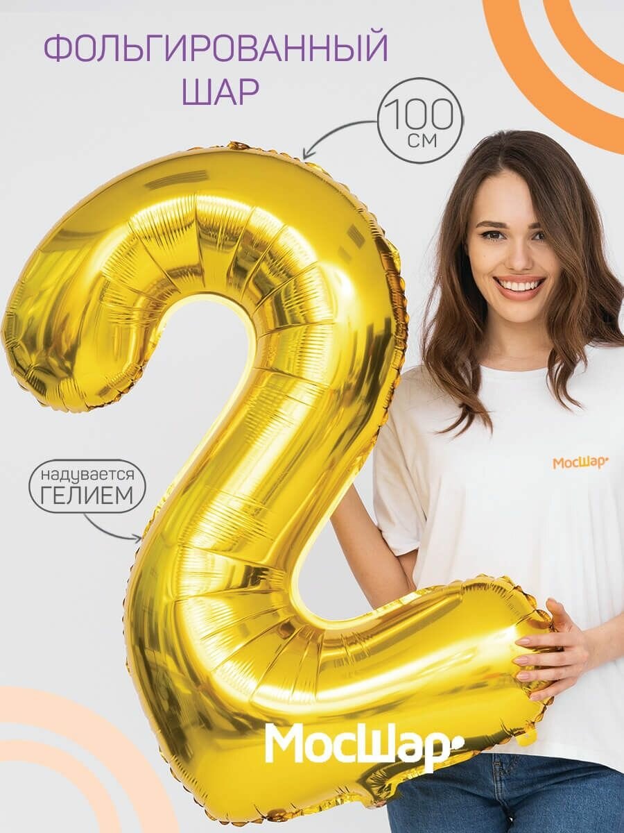 Фольгированный воздушный шар цифра 50 пятьдесят золото 100см - Мосшар