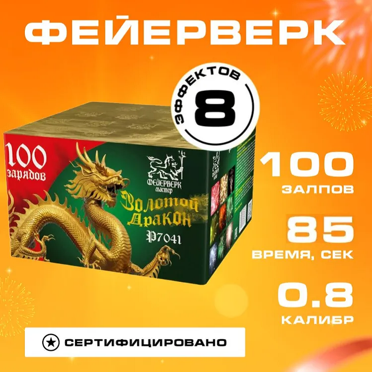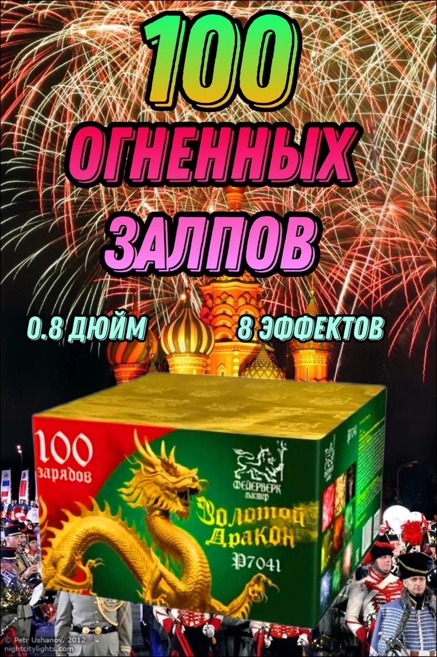 Батарея салютов Фейерверк Мастер P7041 Золотой дракон (100 залпов, 0.8" дюйма, 75 секунд, 25 метров) - фейерверк салют