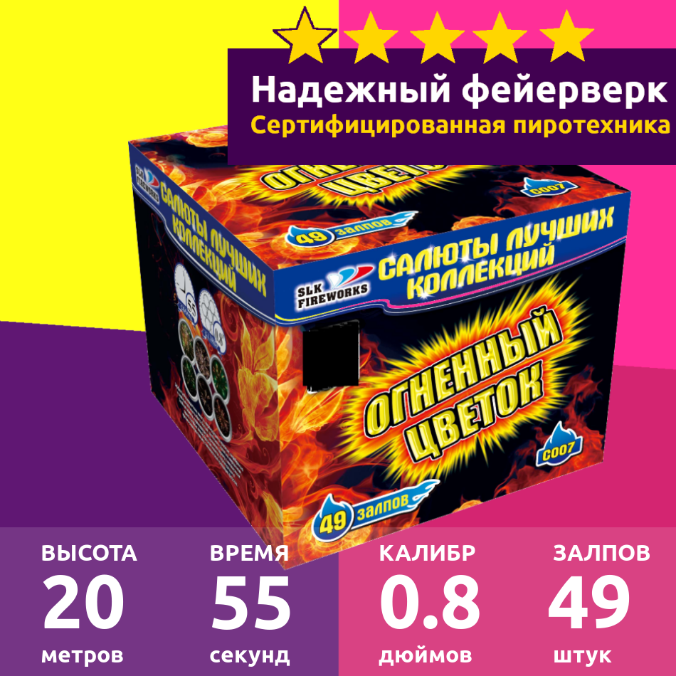 Купить Салют "Огненный цветок" 0.8"калибр,49 залпов,6 эффектов
