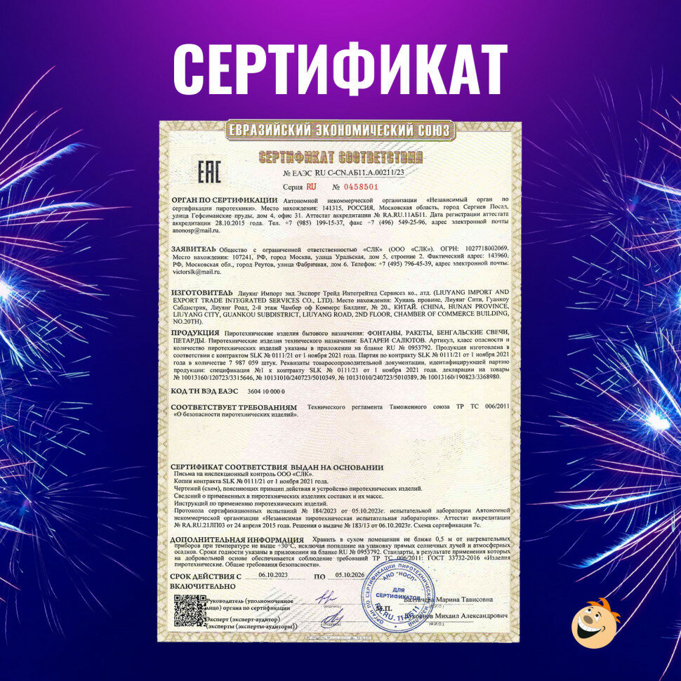 | Особенности фейерверка | высотный / красочная концовка / парковый |