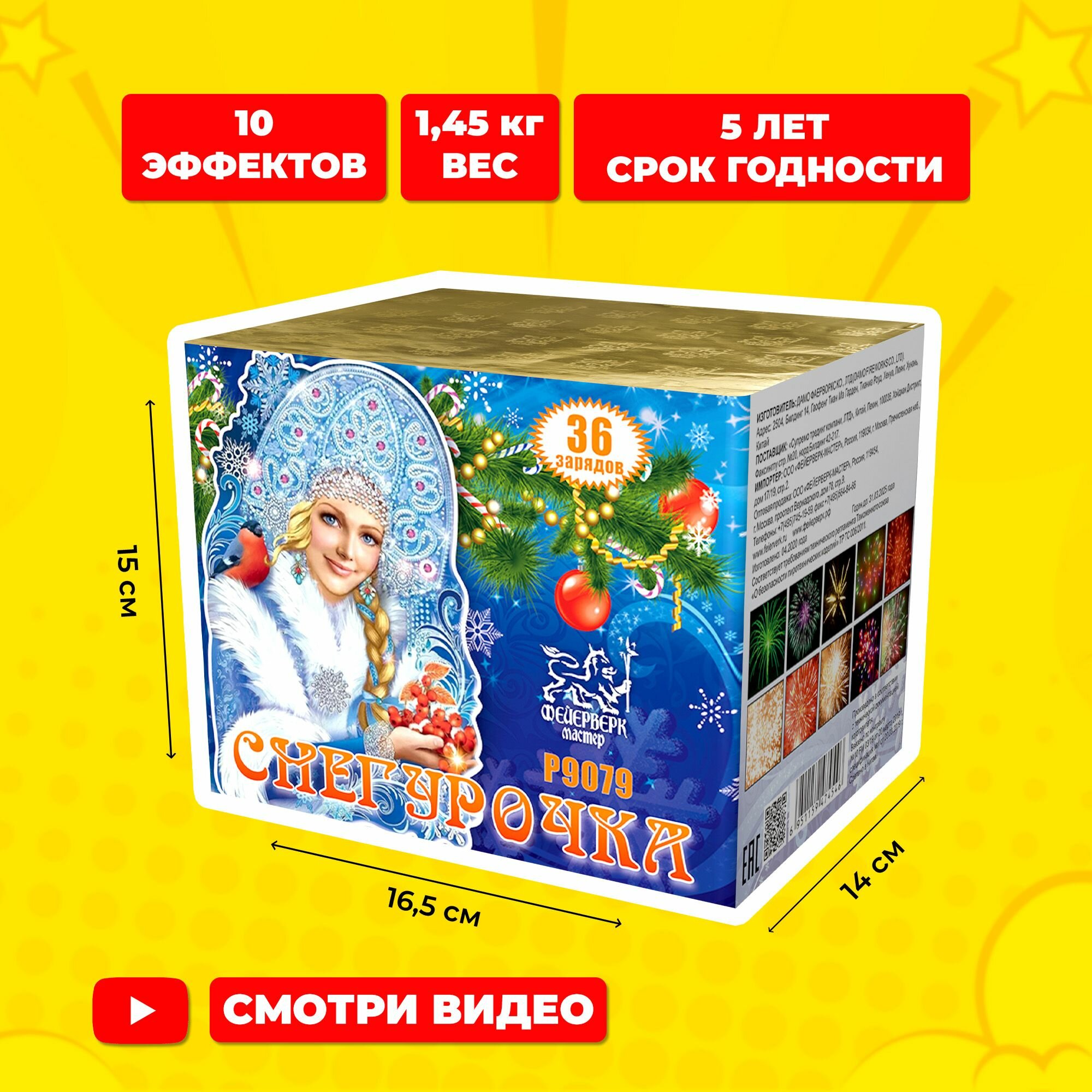 СохранитьСалют фейерверк Снегурочка, 36 зарядов, 0.8 дюймов, P9079 интересное: