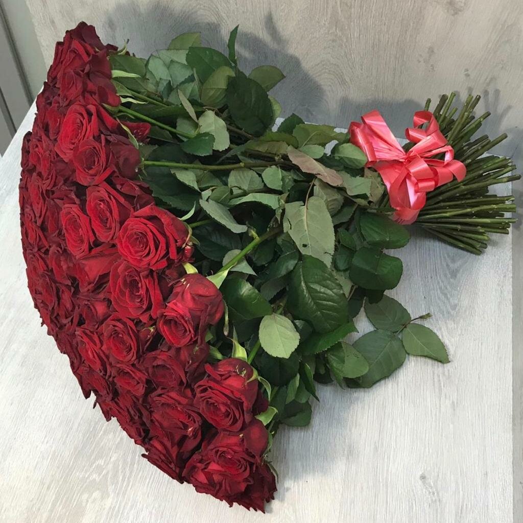 Купить Живые цветы букет роз 101 шт. 50 см. красный, сорт "Ред Наоми"