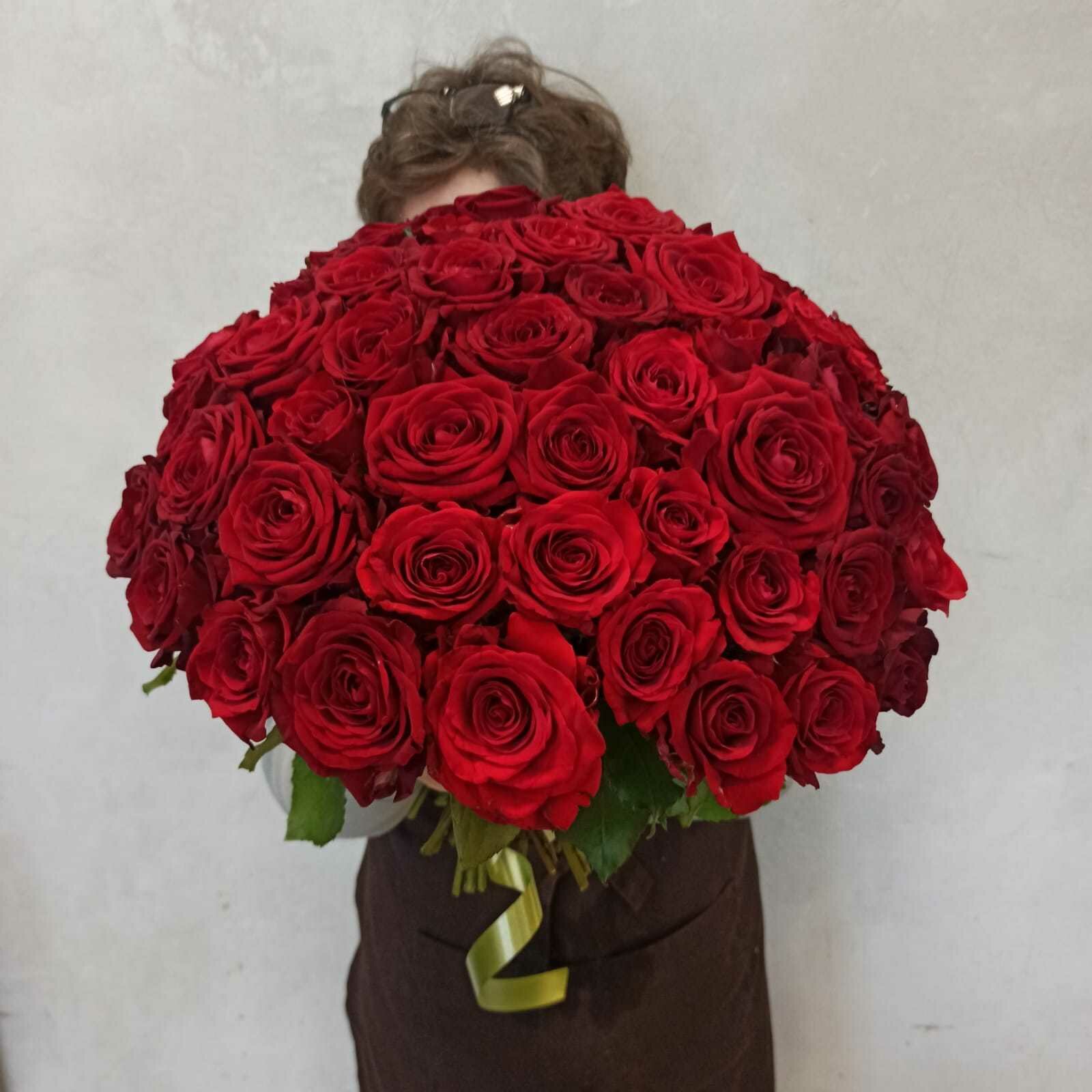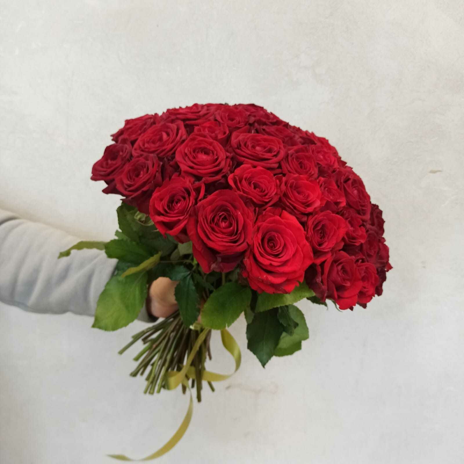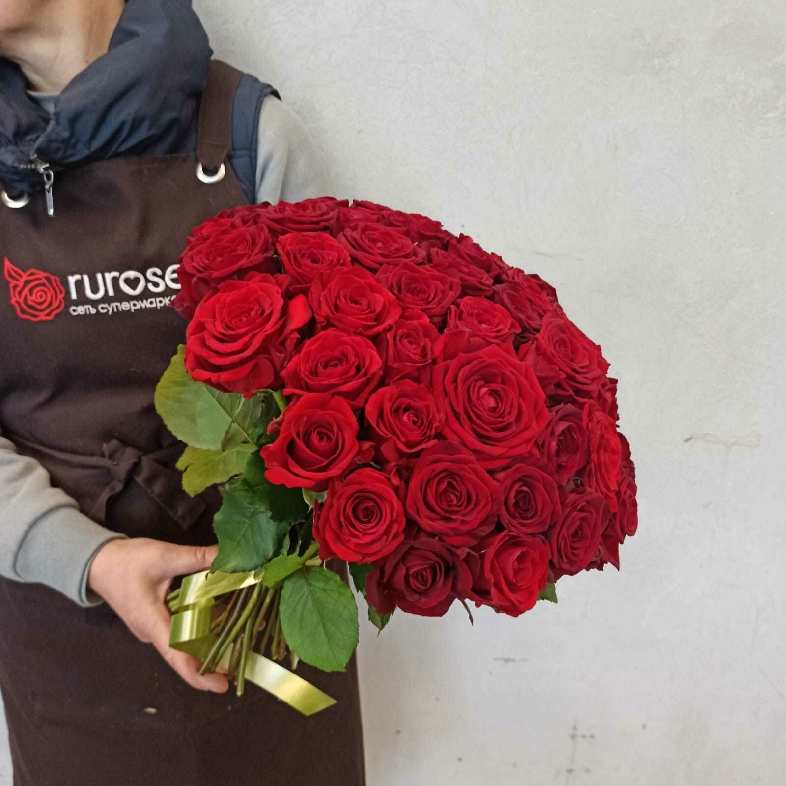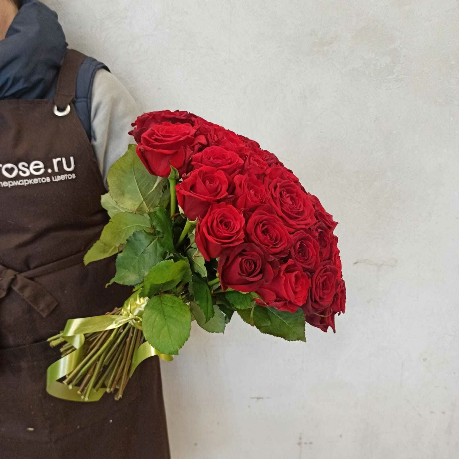 Живые цветы букет красных роз 51 шт 40 см