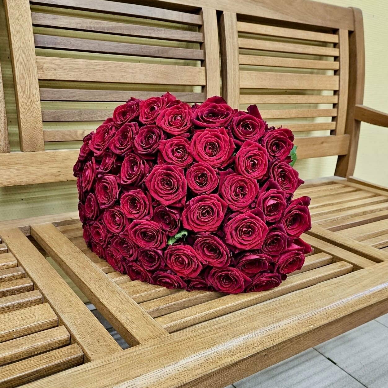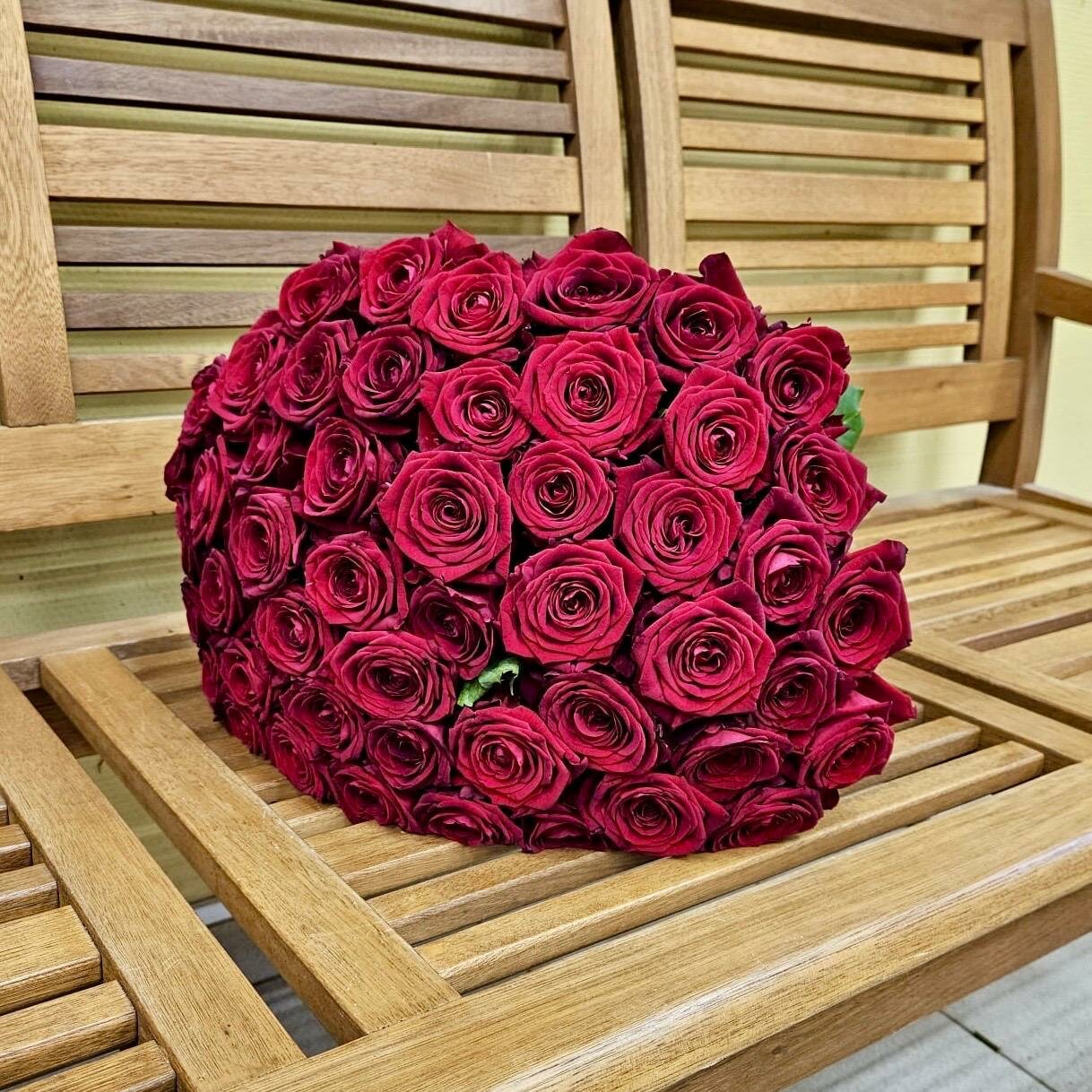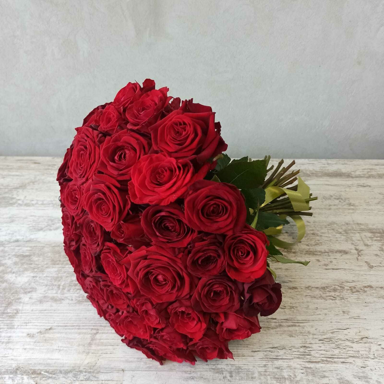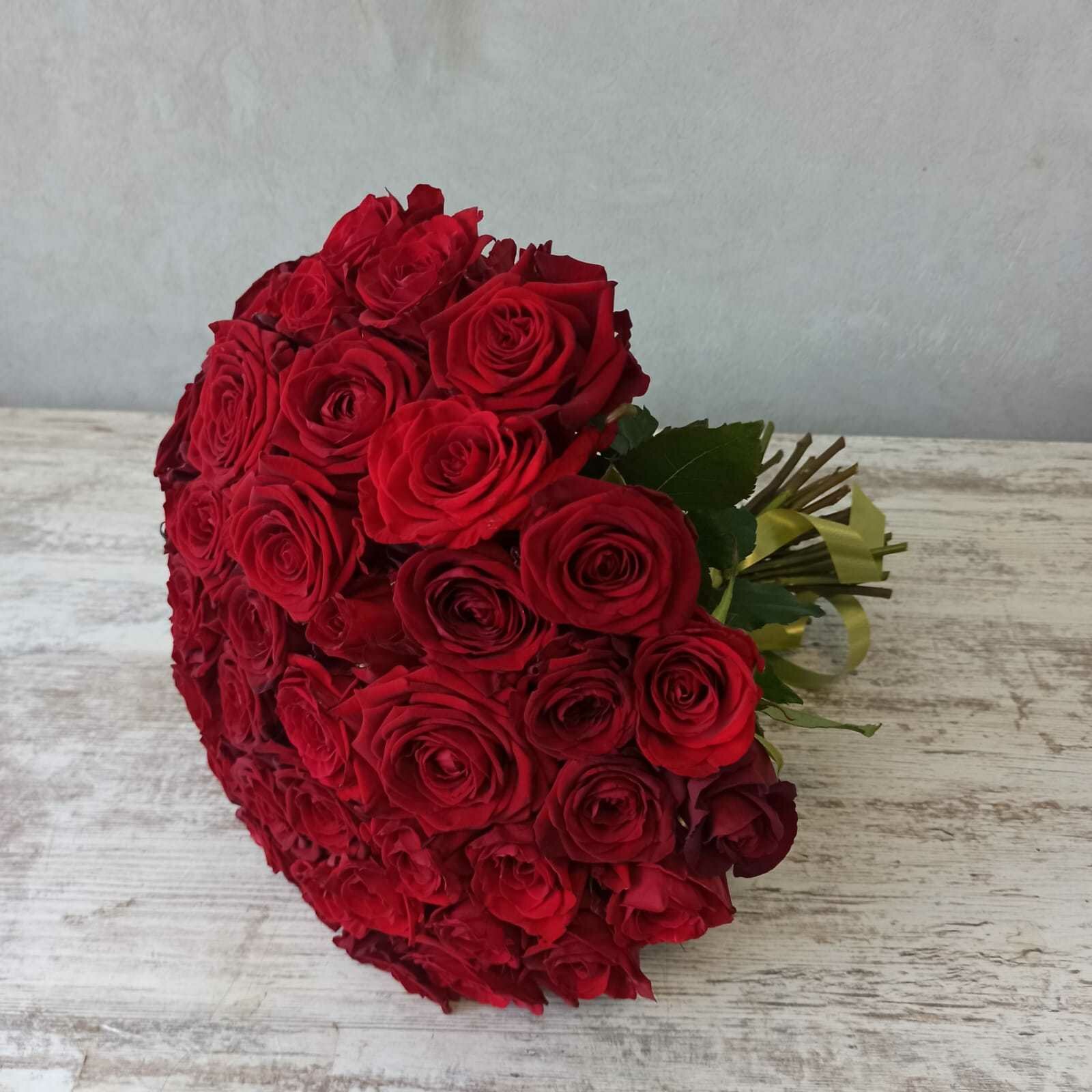 Живые цветы букет красных роз 51 шт 40 см