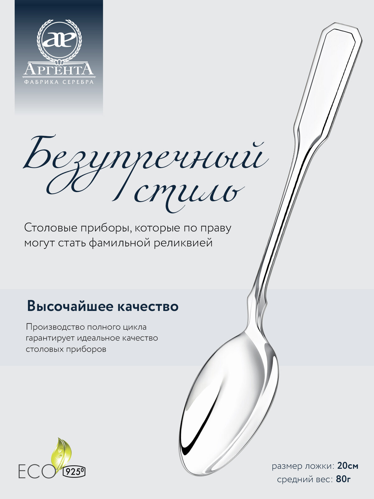 Серебряная чайная ложка с логотипом "Е" с позолотой от бренда "Аргента"