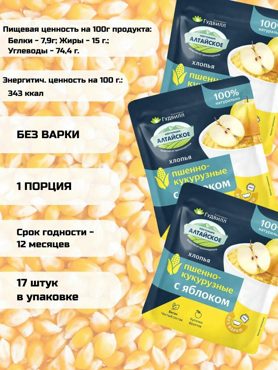 Купить Каша быстрого приготовления пшенно-кукурузная с яблоком, 17 шт по 40 г Гудвилл