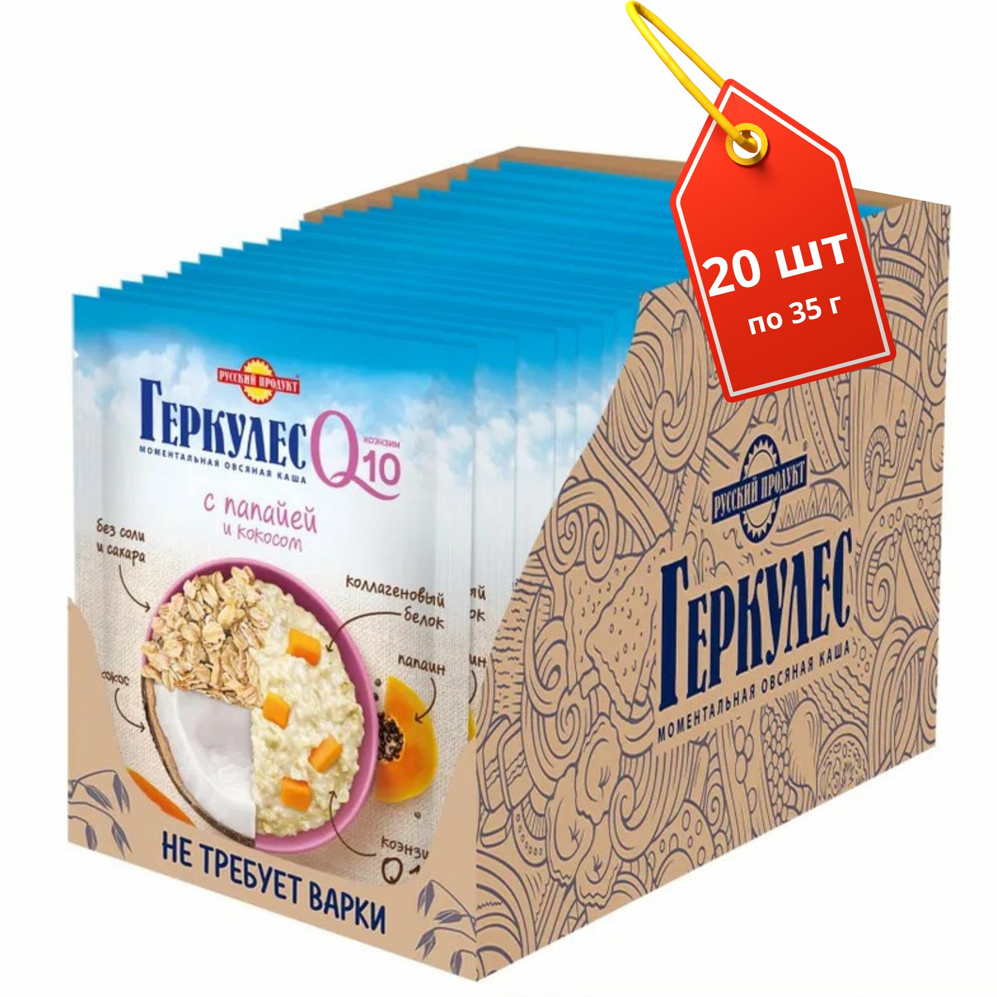 Купить Упаковка из 20 штук Каша Геркулес Q10 Овсяная с папайей и кокосом 35г