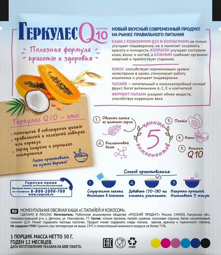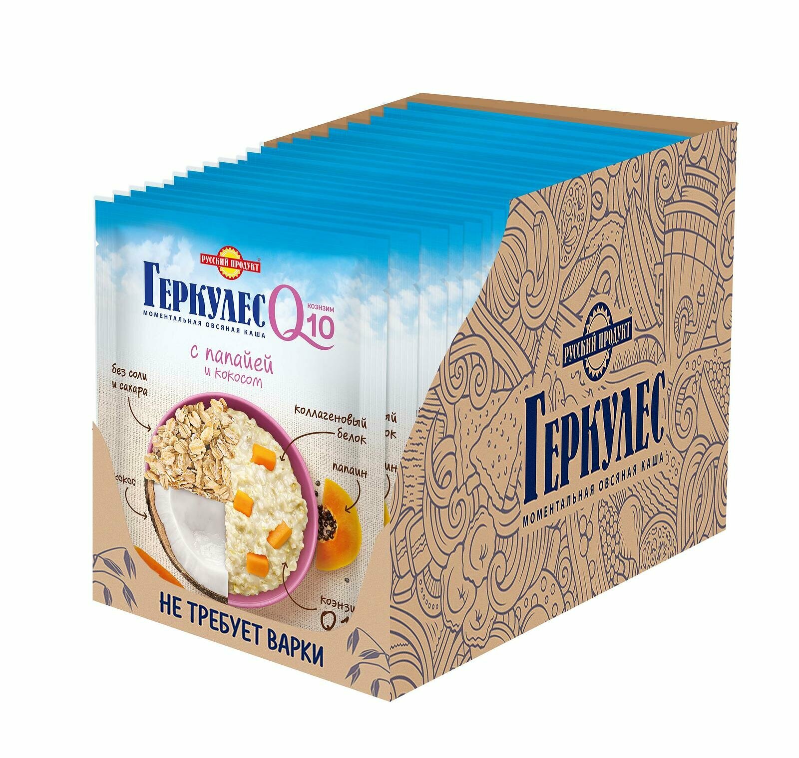 Овсяная каша моментальная с папайей и кокосом "Геркулес Q10" 35г/20 пакетиков в коробке