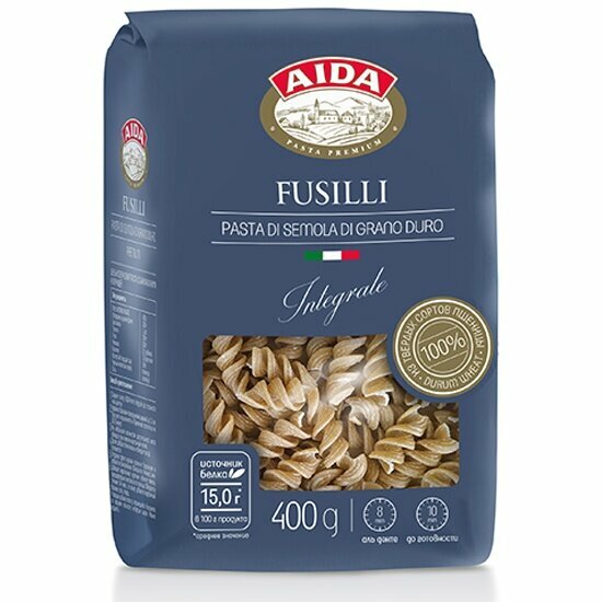 Макаронные изделия Aida цельнозерновые Fusilli Спираль 400 г интересное: