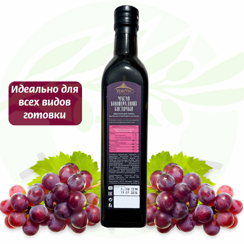 Масло виноградной косточки, рафинированное. VesuVio, Италия, для жарки, для выпечки, для заправки салатов, 500 мл.
