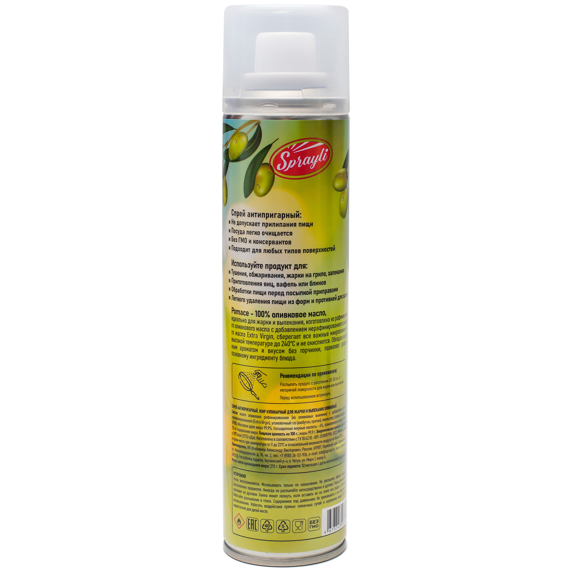 Купить Оливковый антипригарный масло спрей для жарки и выпекания Sprayli