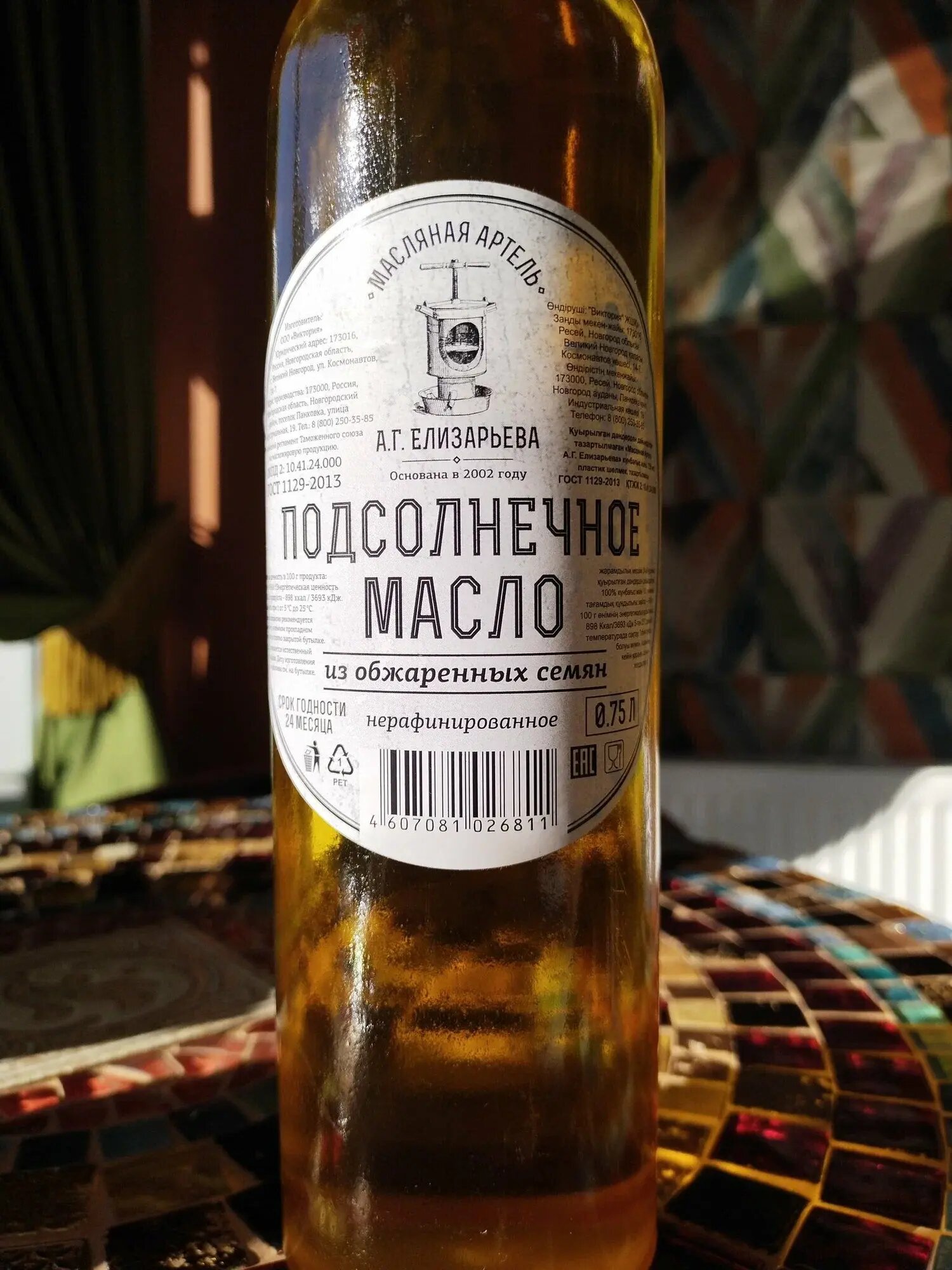 Масляный король, Масло фермерское подсолнечное "Масляная Артель Елизарьева А.Г." из жаренных семян, 750 мл