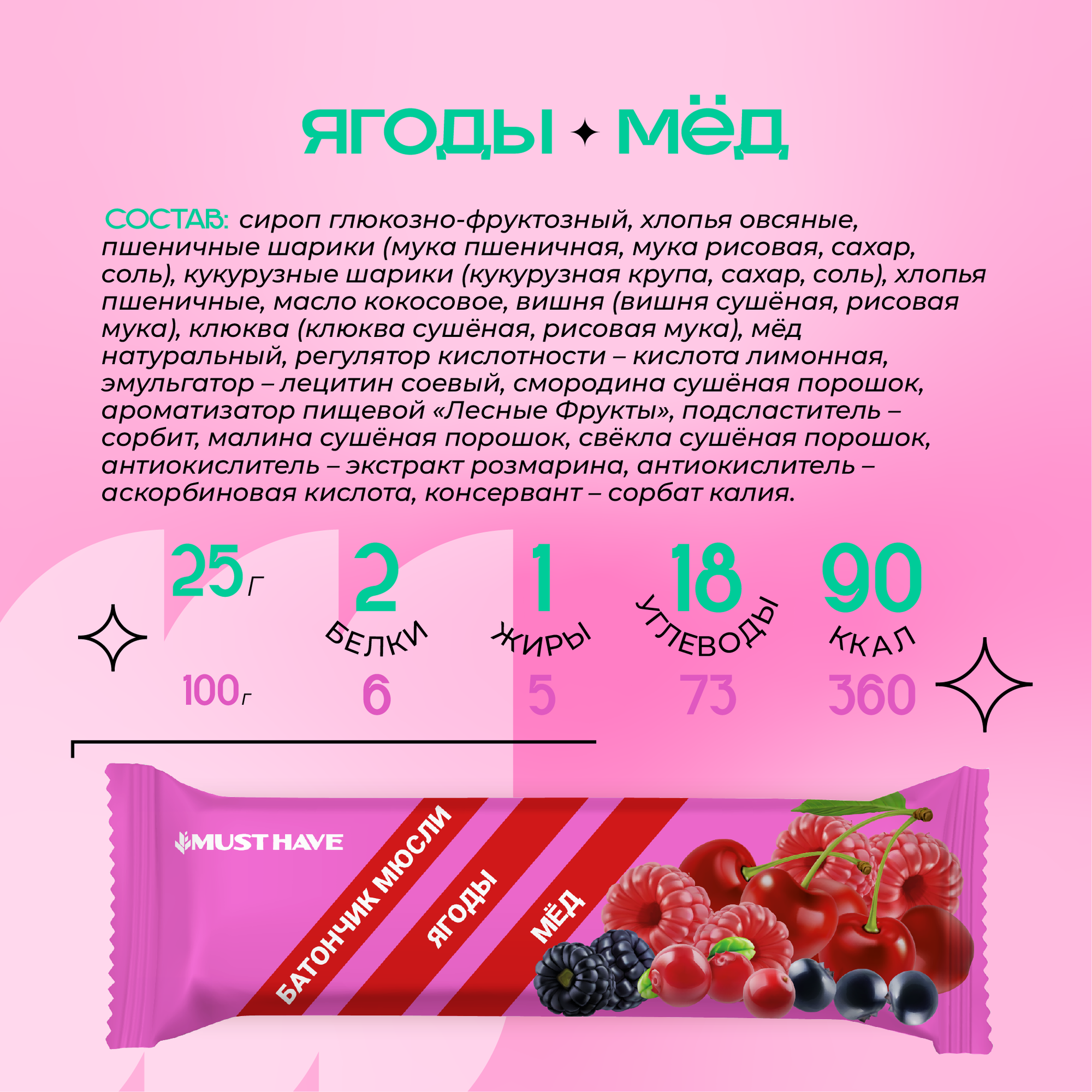 Батончик мюсли MustHave "Ягоды и мёд" 25г (18шт)