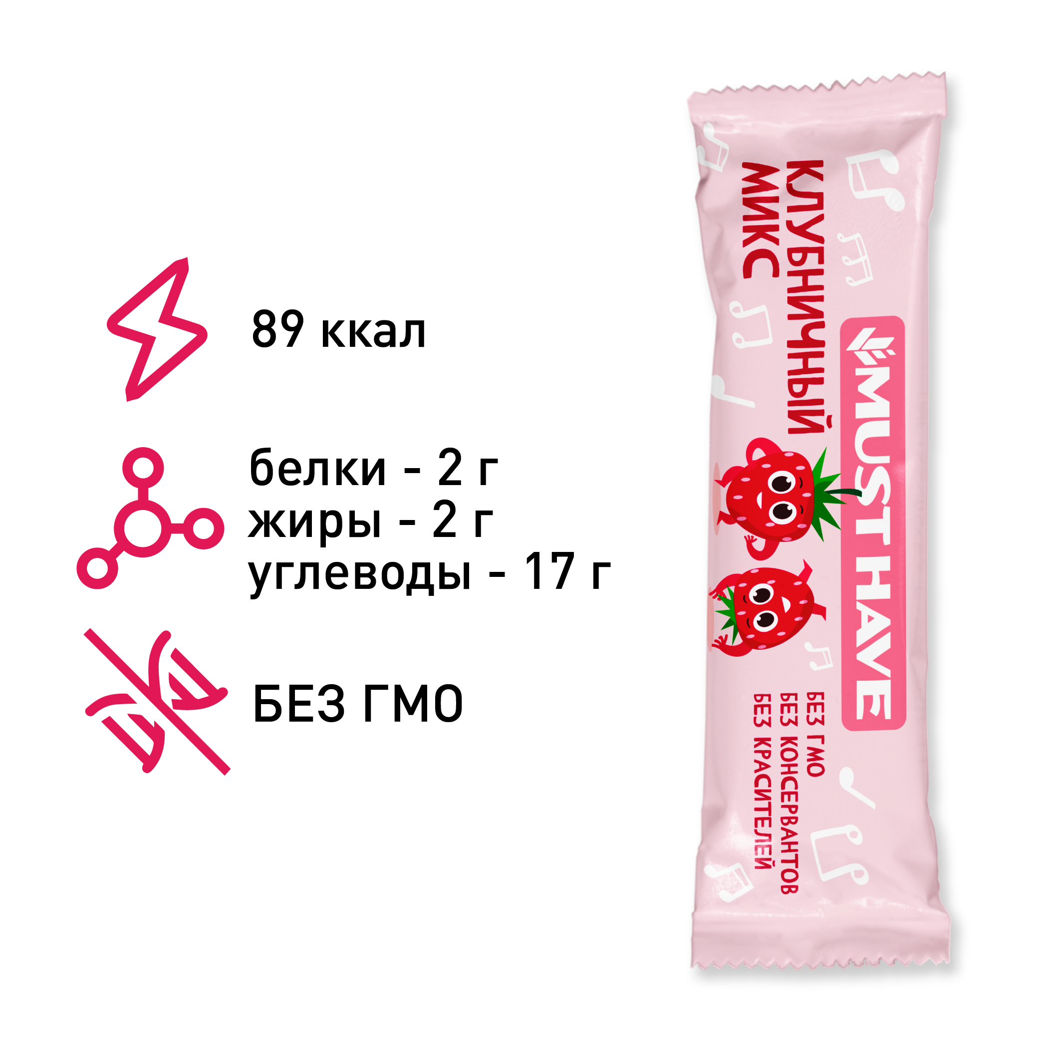 Батончик мюсли MustHave "Клубничный микс" 25г (25шт)