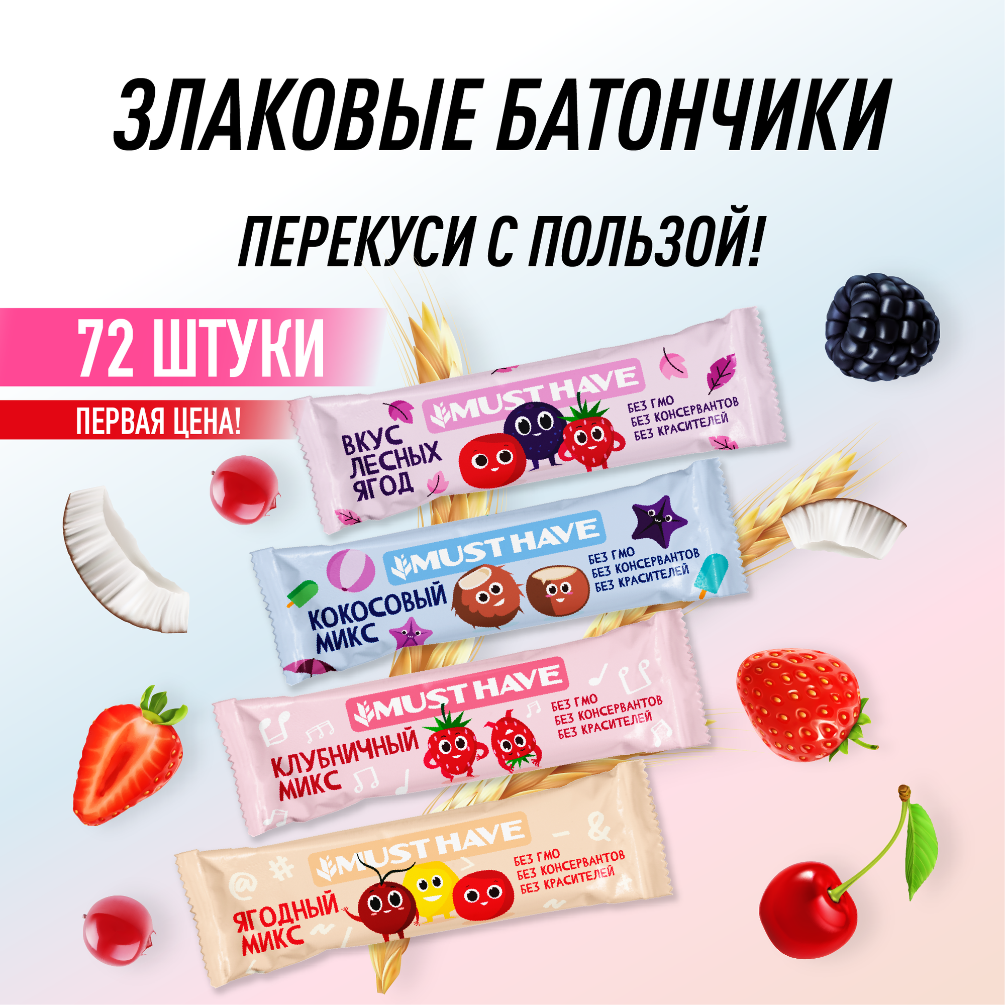 Батончики мюсли MUST HAVE полезный перекус «Вкус лесных ягод», 72 шт по 25г