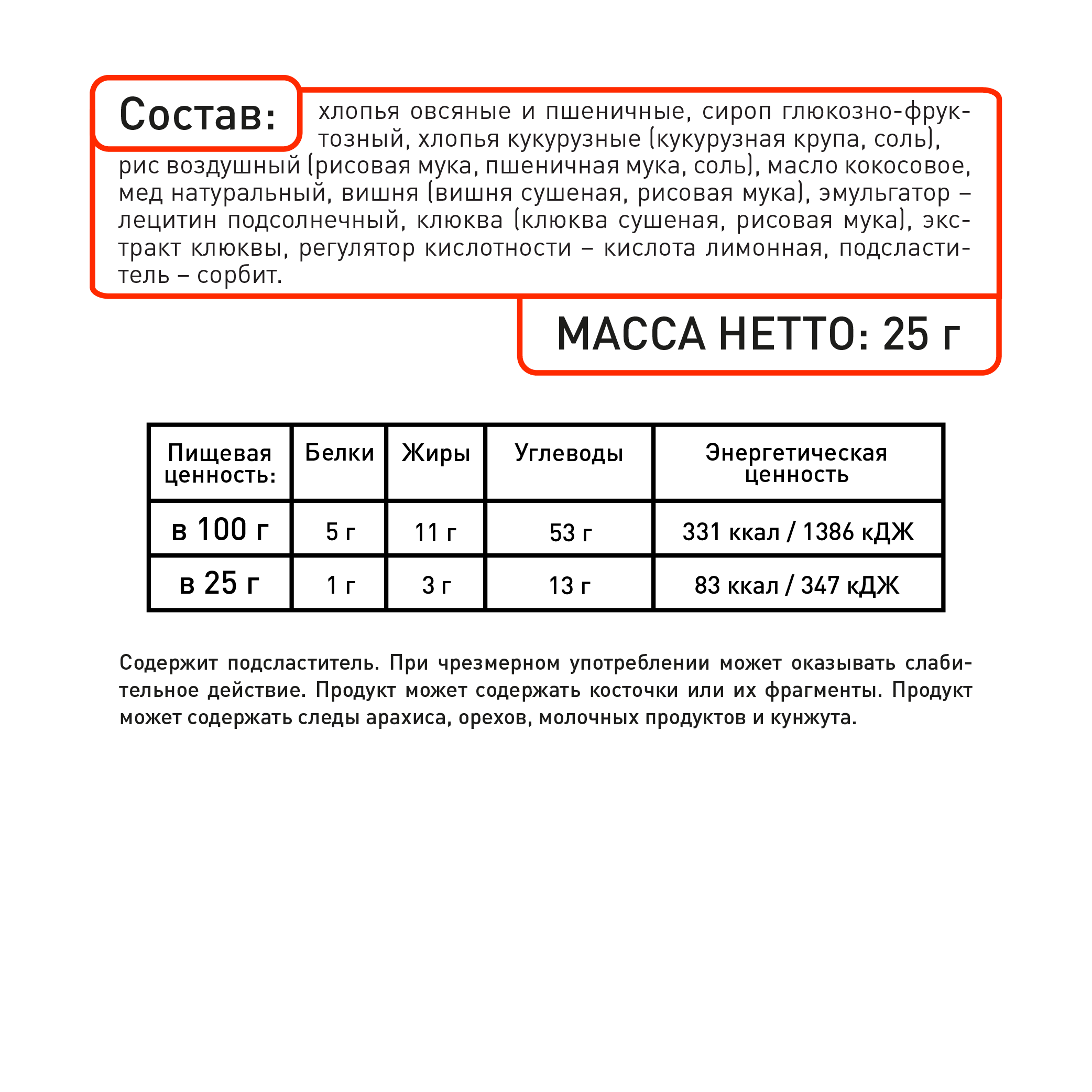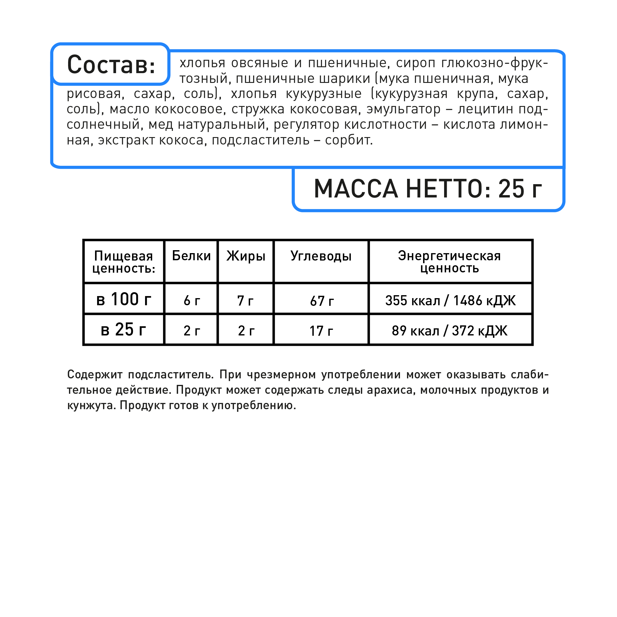 | Не содержит | ГМО, искусственные добавки, искусственные красители, консерванты, пальмовое масло |