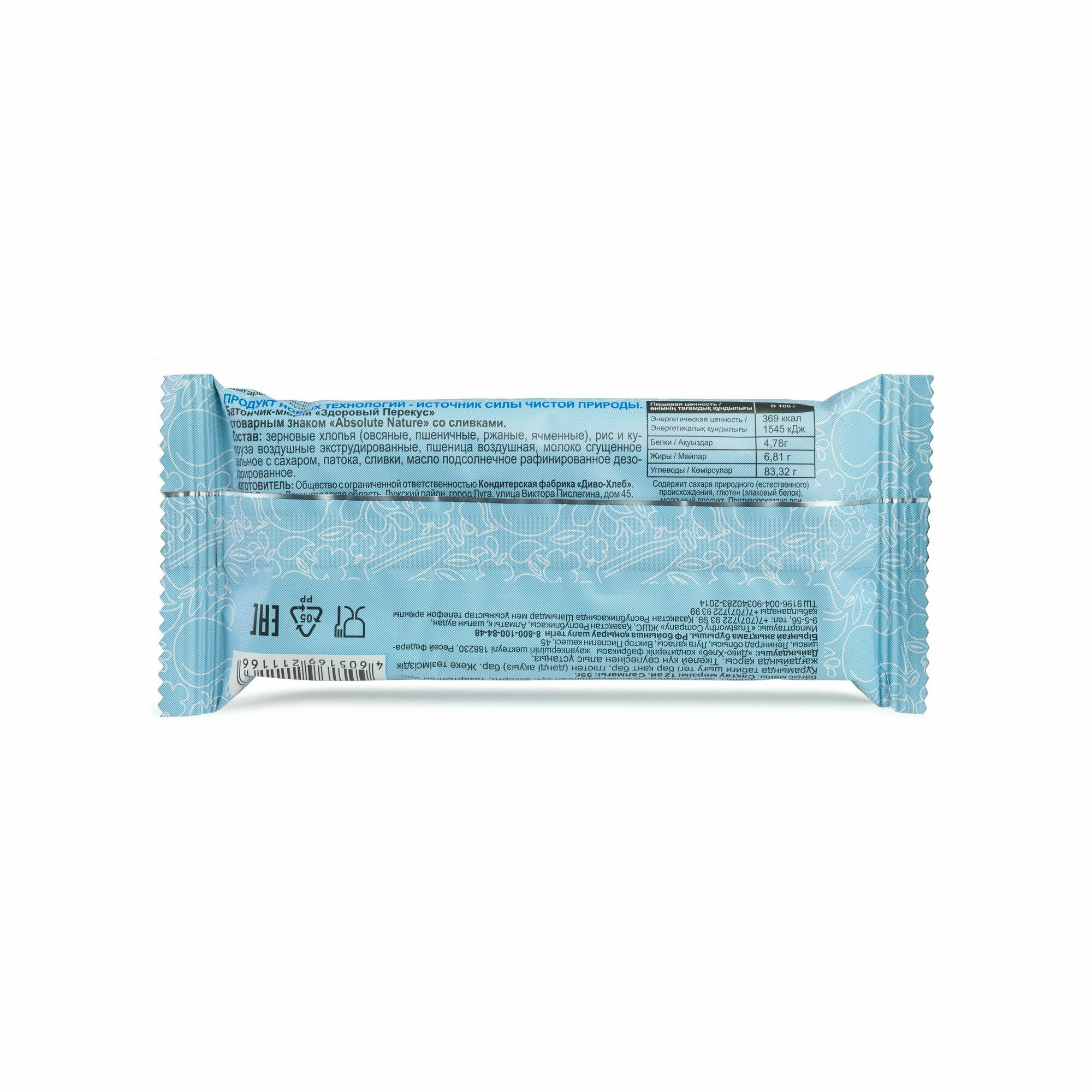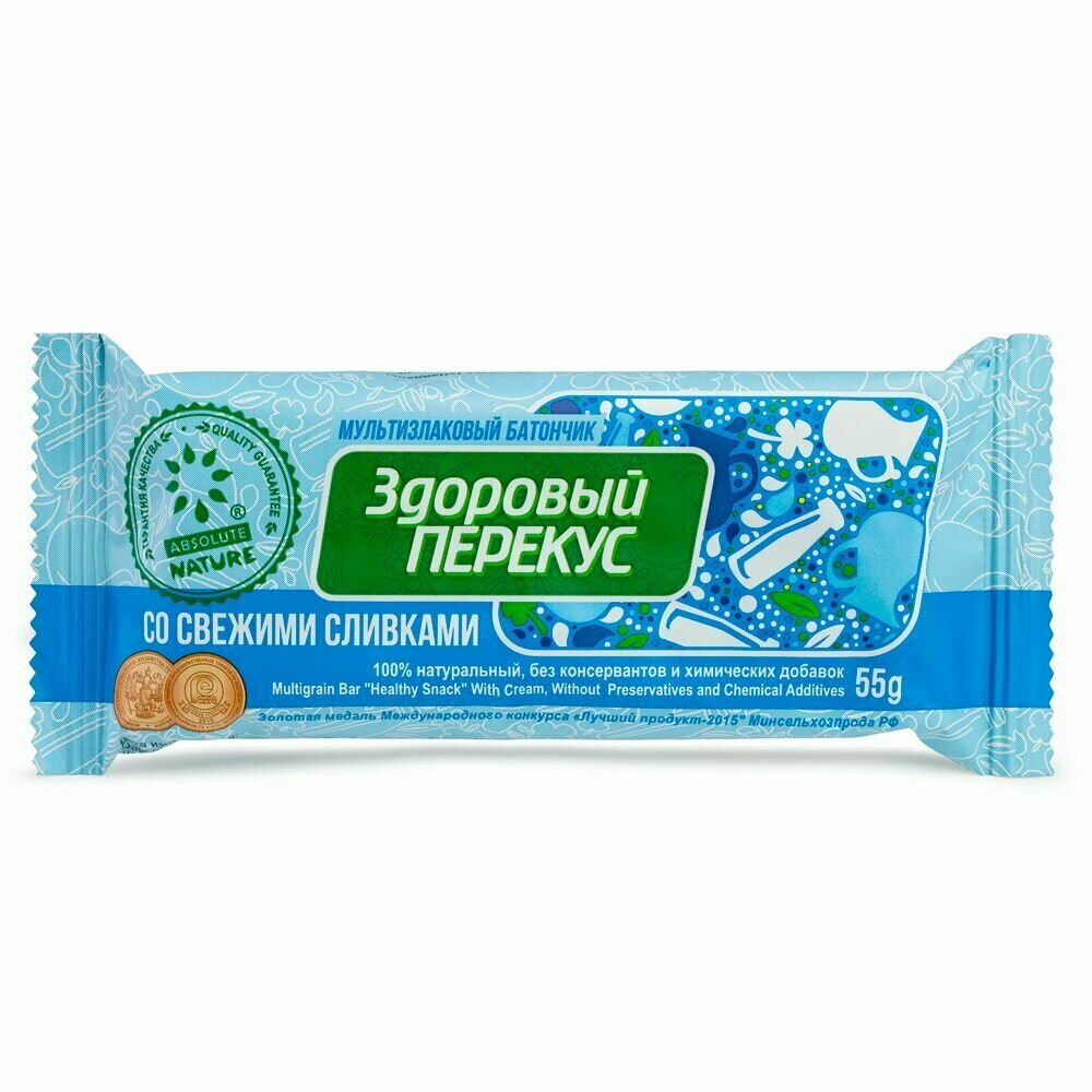 Злаковый батончик Absolute NATURE Здоровый перекус со сливками 55 г, 1 шт.