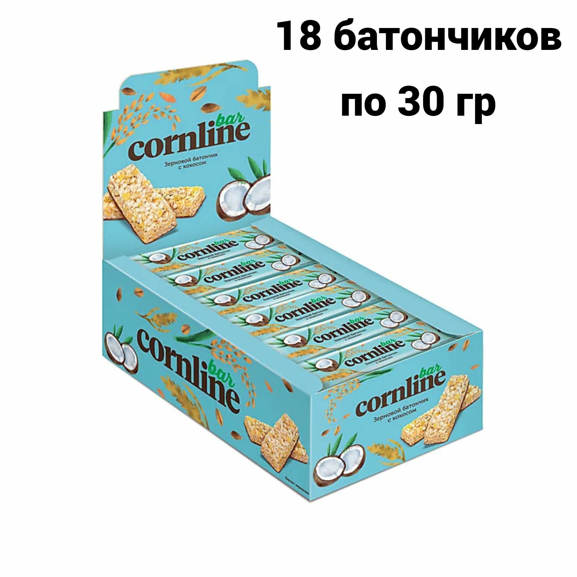 Cornline, Батончик зерновой с кокосом, 30 гр.*18 интересное: